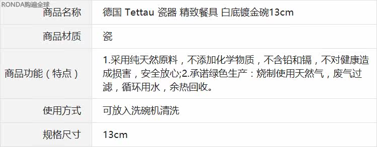 Германия импортирована Tettau European -Style Gold -Plogled Ceramic Bowl Creative Retro High -End Crafts 13 см.