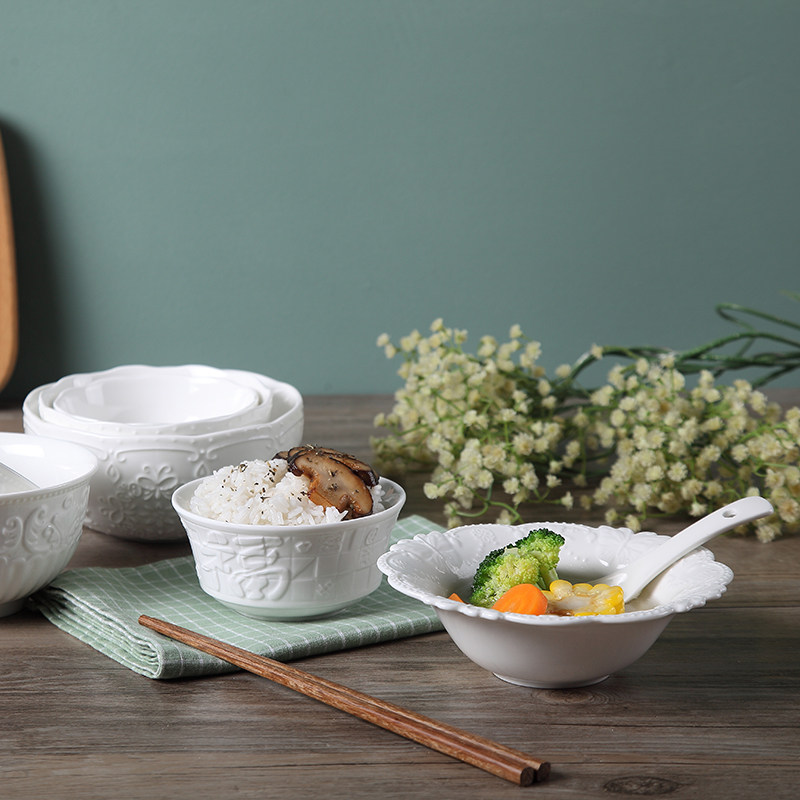 Керамическая домашняя рисовая чаша большая миска суп миска европейская рельеф
