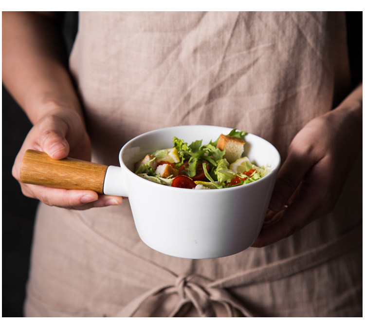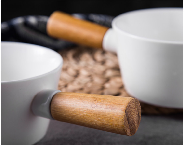 Японская стиль творческая керамическая рисовая миска с деревянной ручкой для мизы