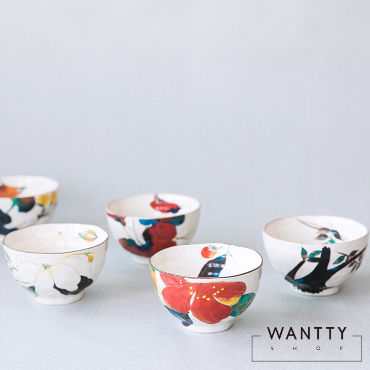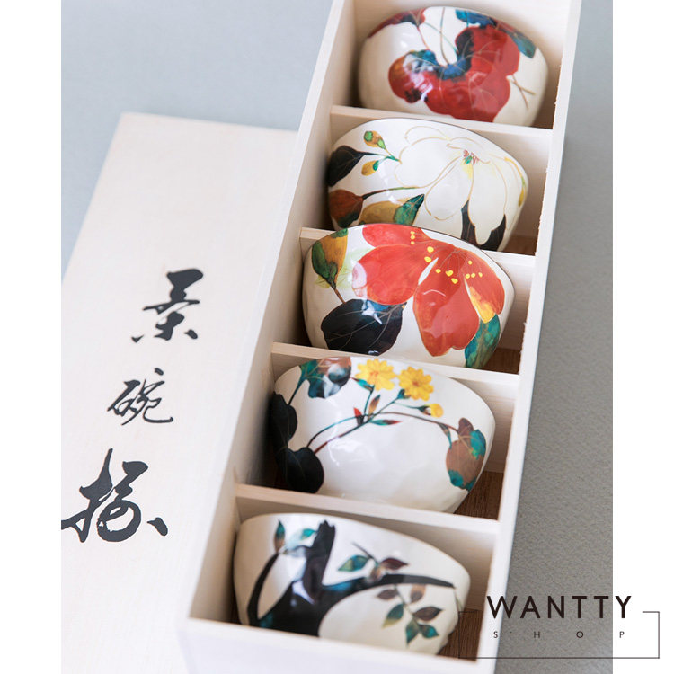 Spot японская -сделанная Mido -обрученная горная камелия японская керамическая рисовая чаша Печать красочный свадебный подарок подарок подарок