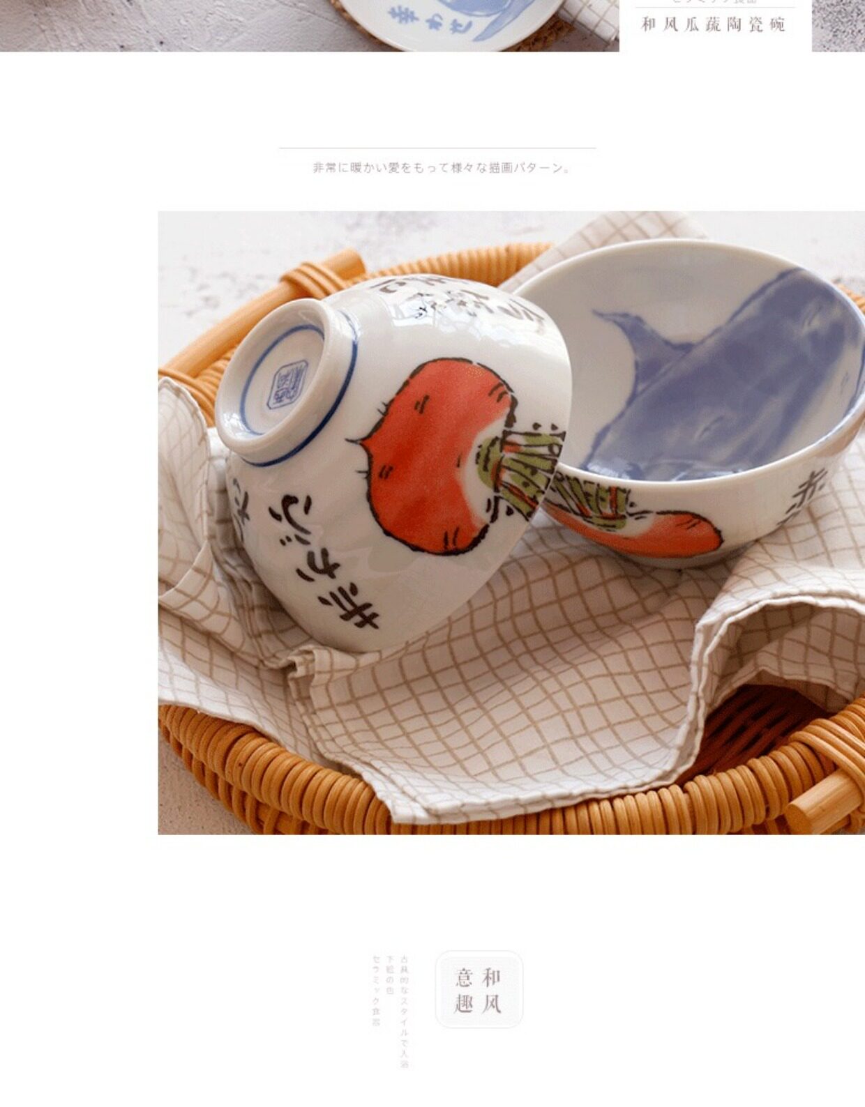 [Овощи и овощи Meng] Японские импортные керамические миски с подглазе японская милая детская рисовая чаша дом