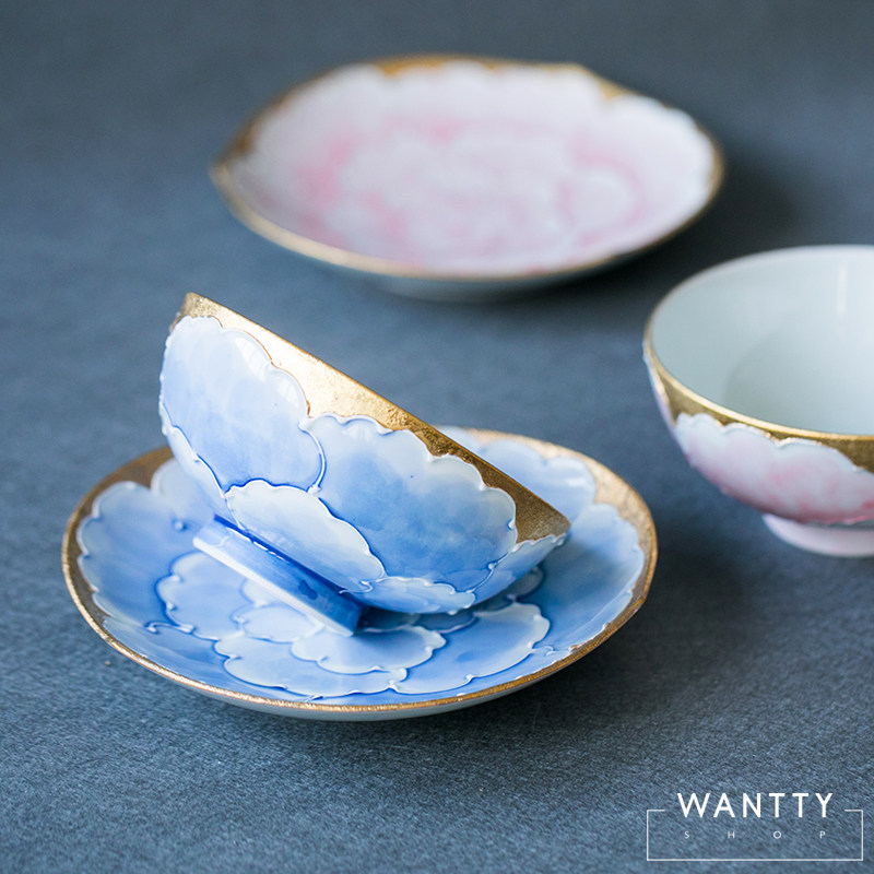 Spot японская японская японская -закупленная Wenshan Kiln Gold и серебряная глазурь Peony Bow