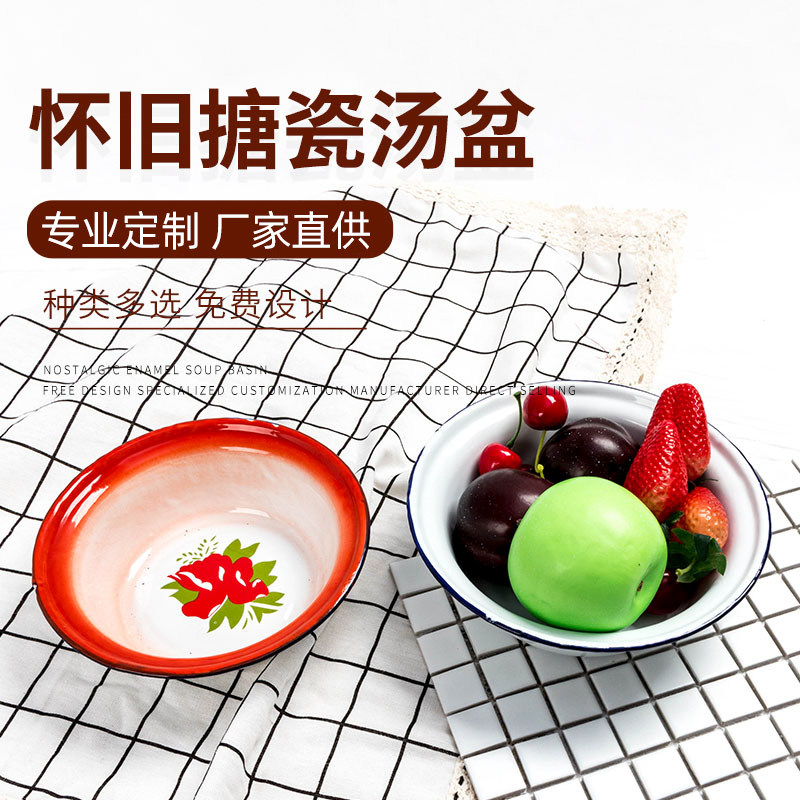 Эмалевая чаша толстая ресторанная суп бассейн эмалевой горшок старая ностальгическая бассейна суп суп суп горшок домашняя овощная миска мгновенная лапша кухня