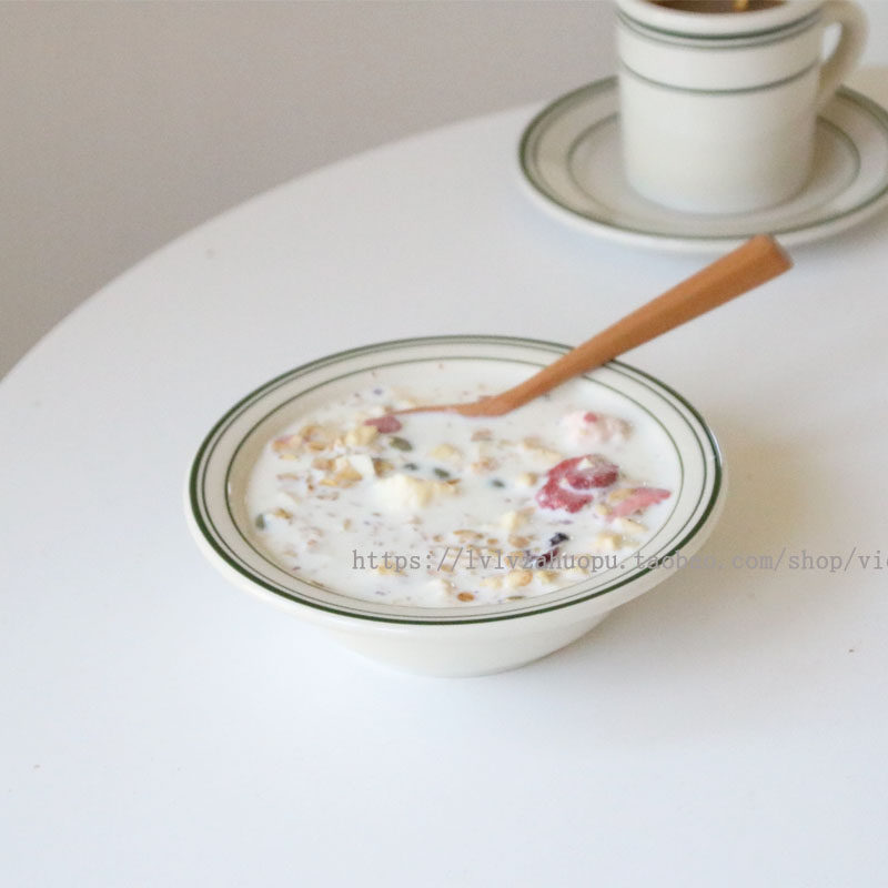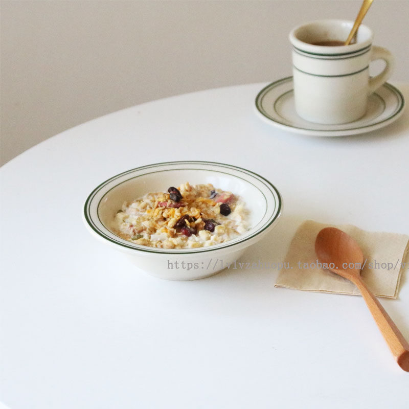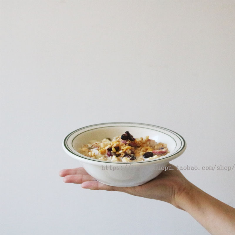 Шикарная Hanfeng Retro Green Line Ceramic Bowl Oatmeal Mow
