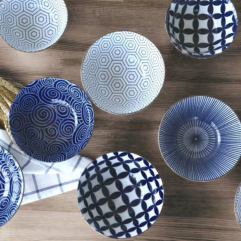 Мино-яки японского производства, ретро-Цинхай, волна, керамическая миска для риса, миска для лапши, тарелка для риса, десять травяных домашних мисок и тарелок в японском стиле, посуда