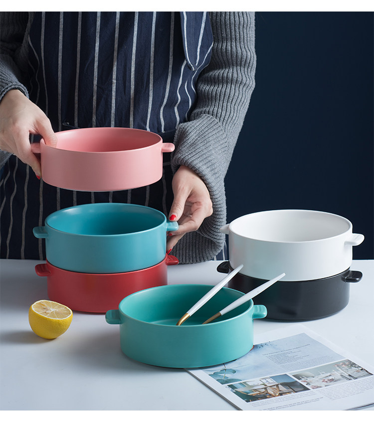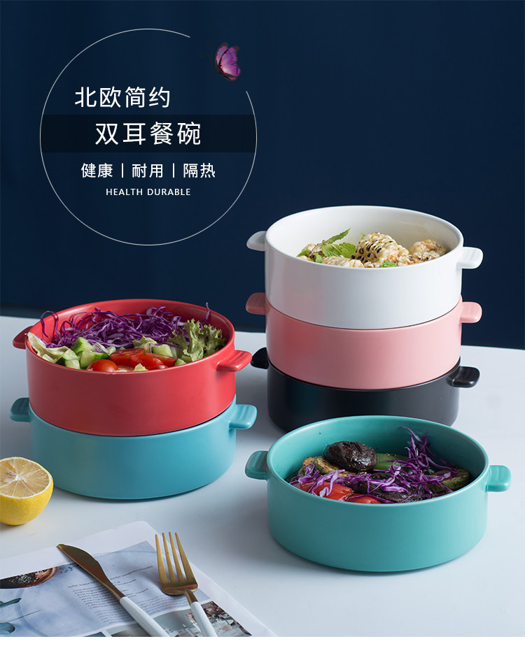 Суп -миска большая миска домохозяйственная творческая ночная посуда рисовая чаша порошковая чаша для супа бассейн Керамическая миска Персонализированная двойная миска для уха миски