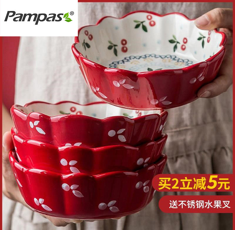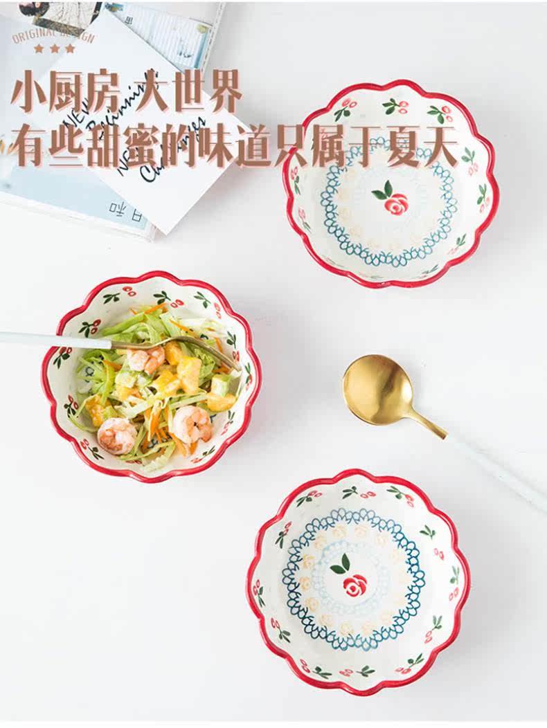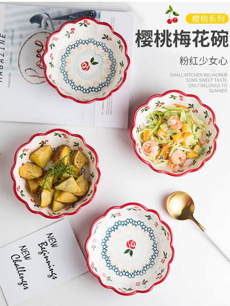 Бытовая японская посуда, салатница с фруктами, керамическая миска, милая миска с вишней, Интернет, миска на гриле со знаменитостями, креативная миска для лапши, личность