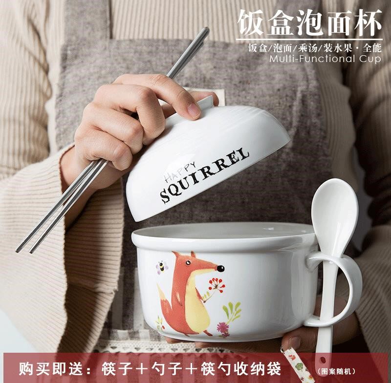 Оборудовать лапшу микроволновую ланч -коробку Мгновенную лапшу Бенто Бенто Ланг коробку миска фарфоровая чаша керамическая чашка и миска с крышкой для супа столока ложки палочки для еды.