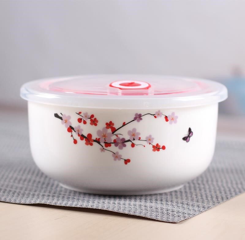Райс и миска свежей миски с крышкой -набор коробки для ланч -коробки с рисовой коробкой мгновенная чашка с лапшой для работы керамическая микроволновая печь на работу