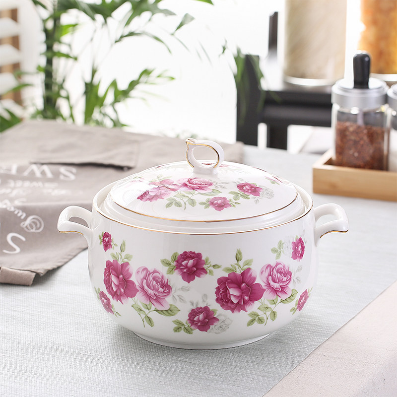 Домохозяйство в стиле европейского стиля с керамическим суповым гнездо гнездо золото золотистое золото большую мощность суп -суп -банка для рисового супа.