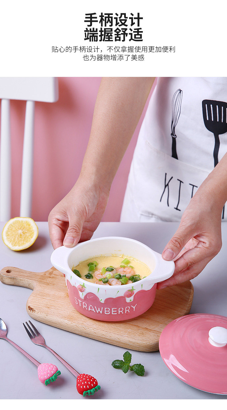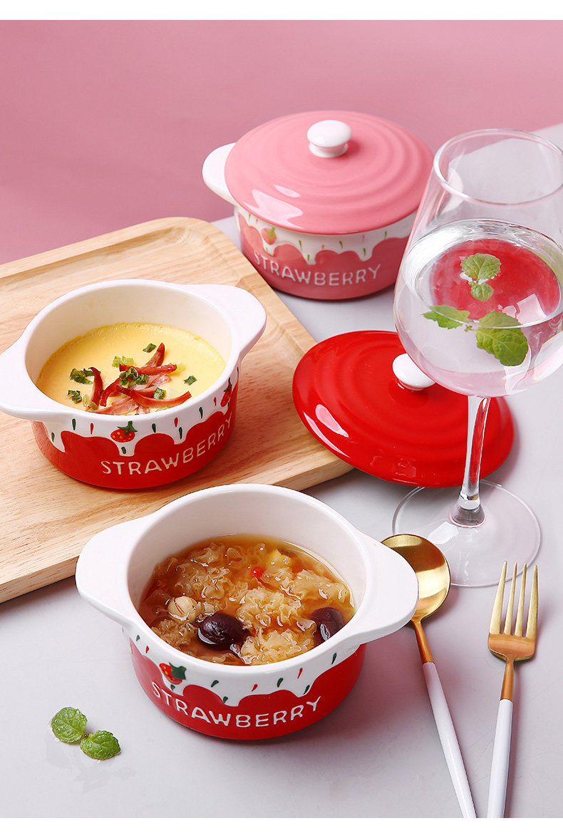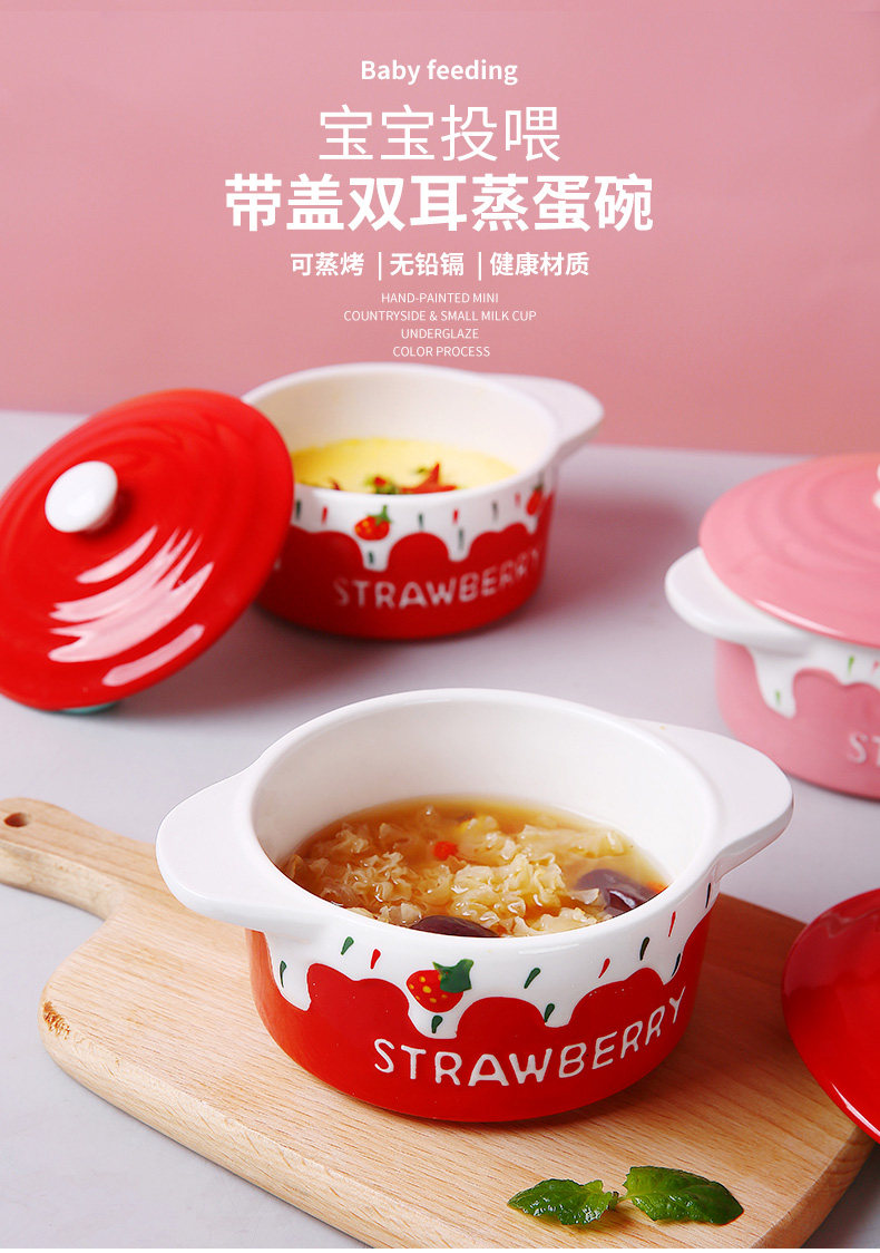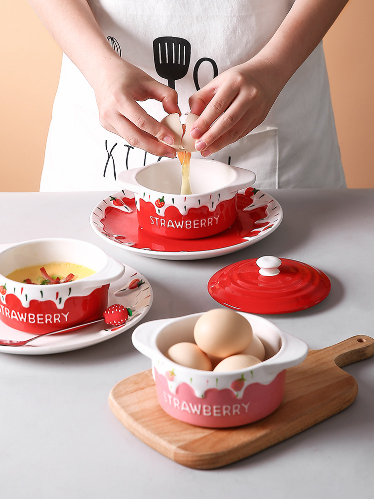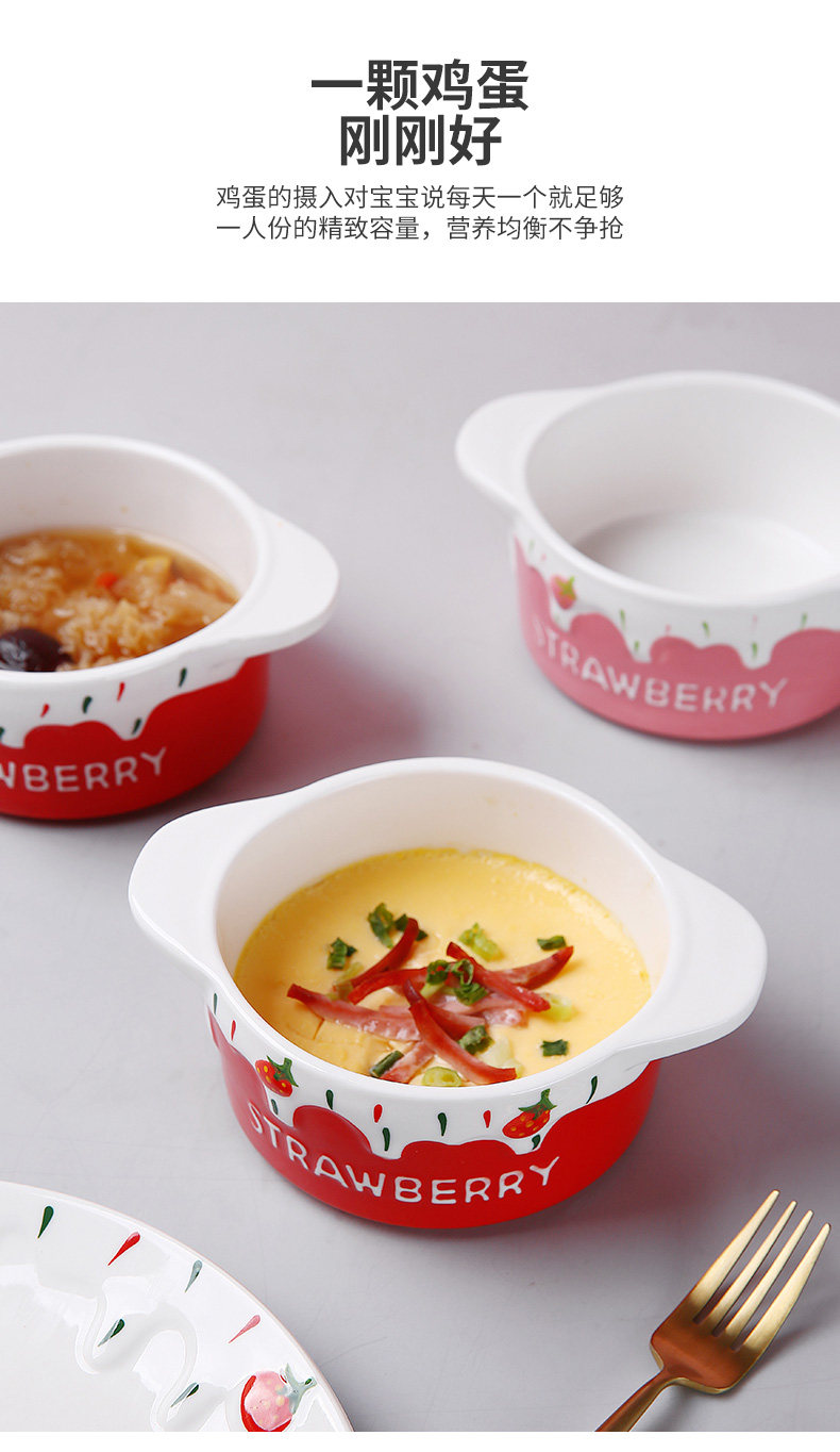 Детская керамическая миска с яйцом с домашним детьми милая клубничная двойная двойная