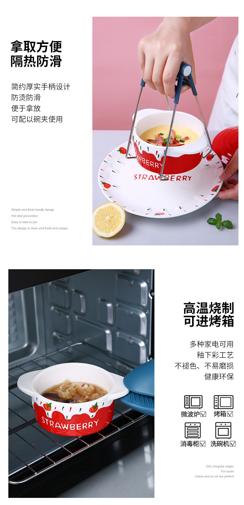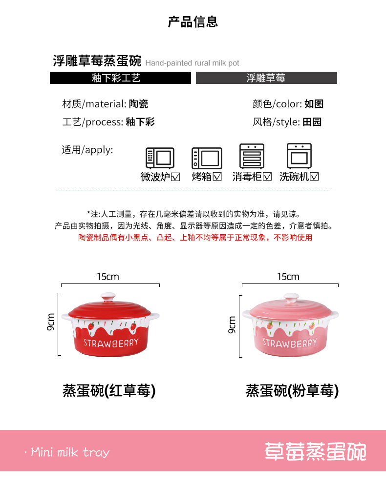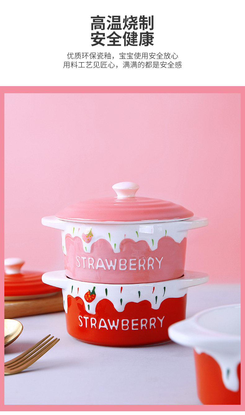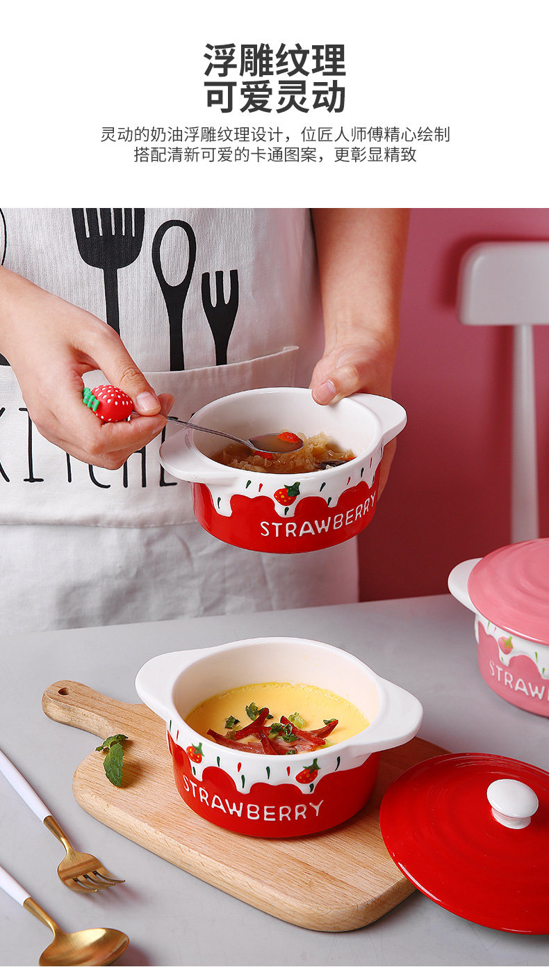 Детская керамическая миска с яйцом с домашним детьми милая клубничная двойная двойная