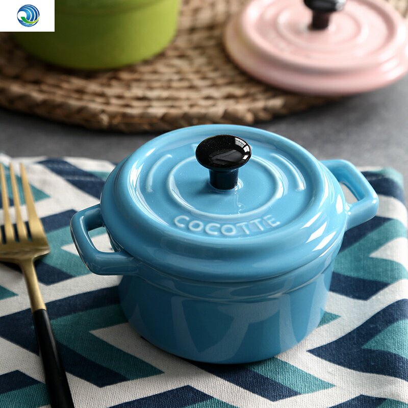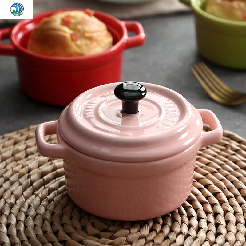 Оба уша Керамическая миска на гриле с крышкой с ручкой выпекайте духовку Десертную миску соевое молоко миску с тушеной тушеной горшкой для птичьего гнезда.