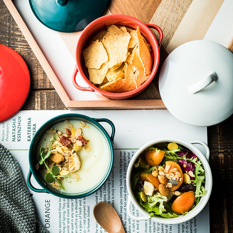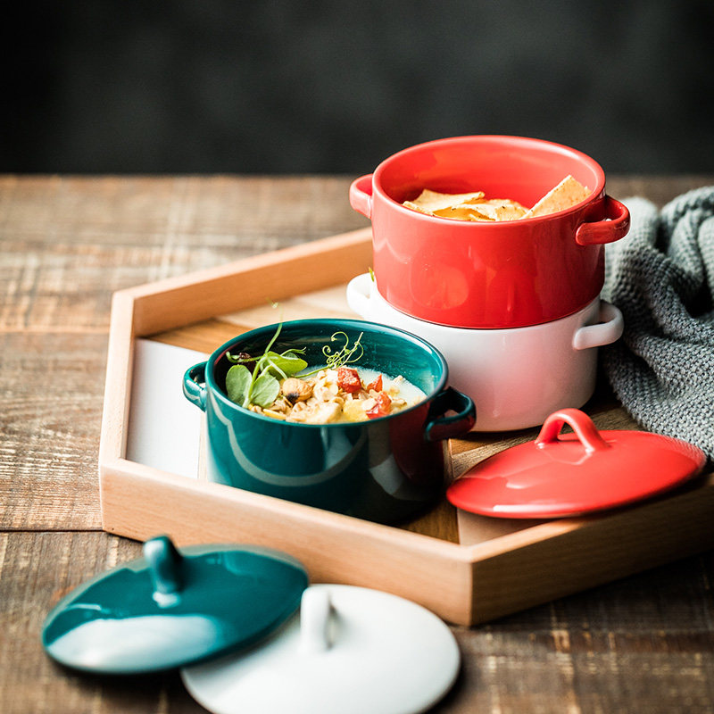 Оба уша Яркие светлые дома, детка, приготовленная на пару, яйцо скандинавской креативной силлеле маленькая запеченная миска для пудинга с маленькой суповой чашкой