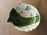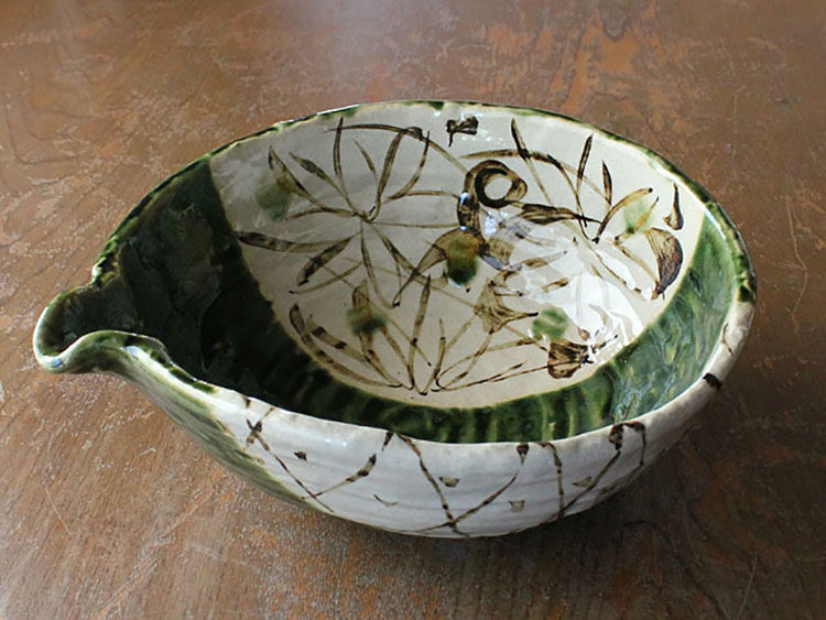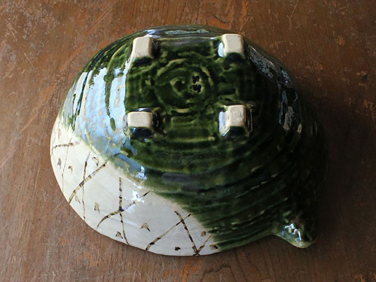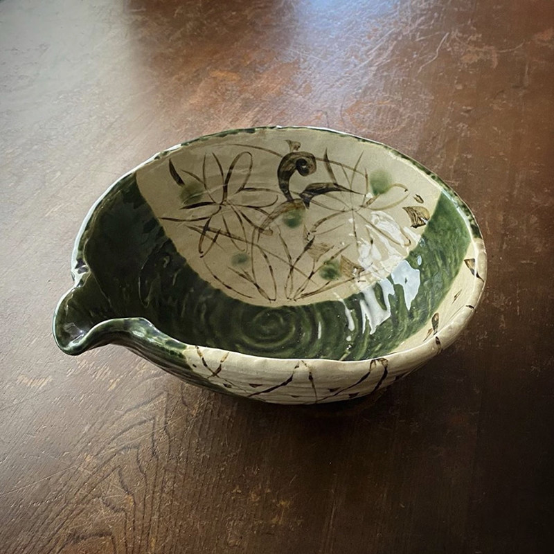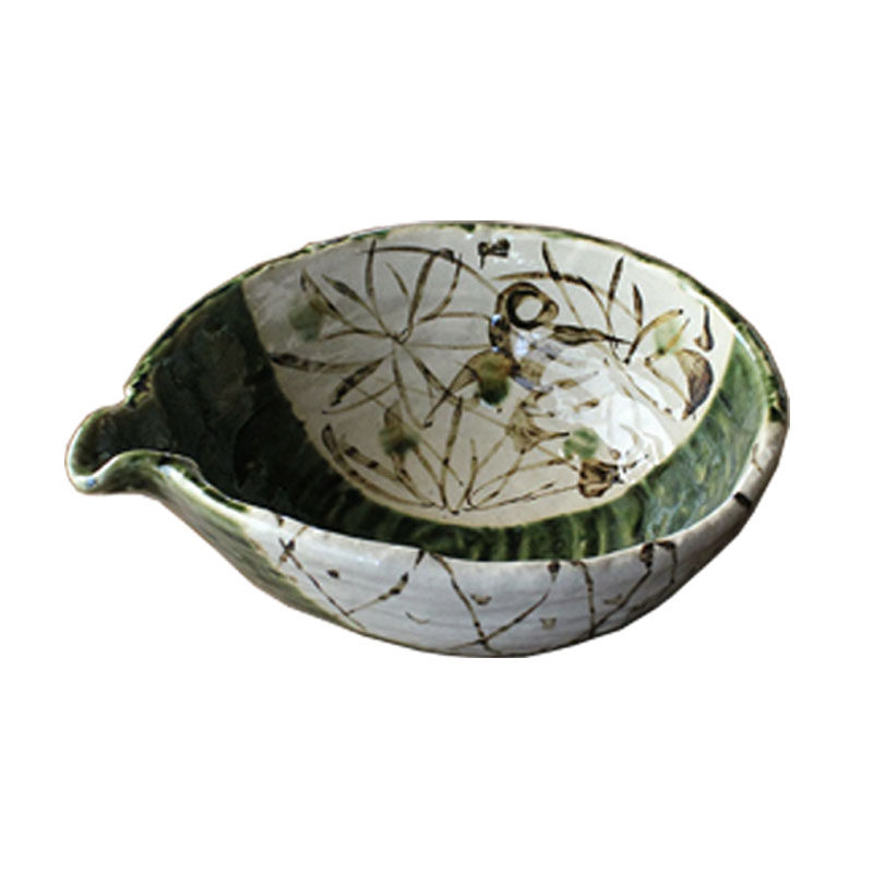 Японская мида -приготовленная тканая, зеленая глазурь, кусочки цветов травы, большие миски, большие миски, большие миски с фруктовым горшком Японский ретро -приготовление пищи.