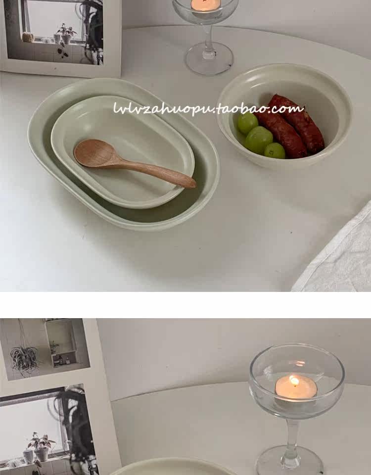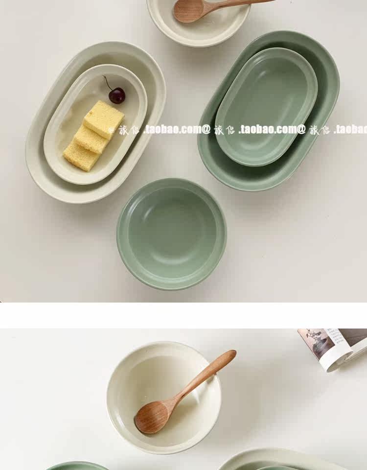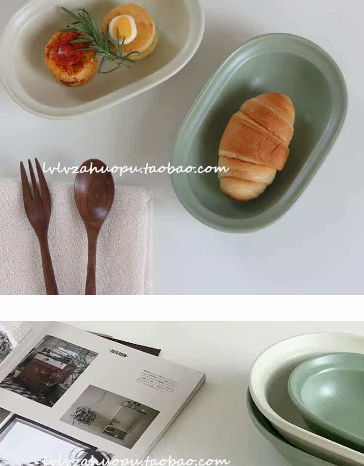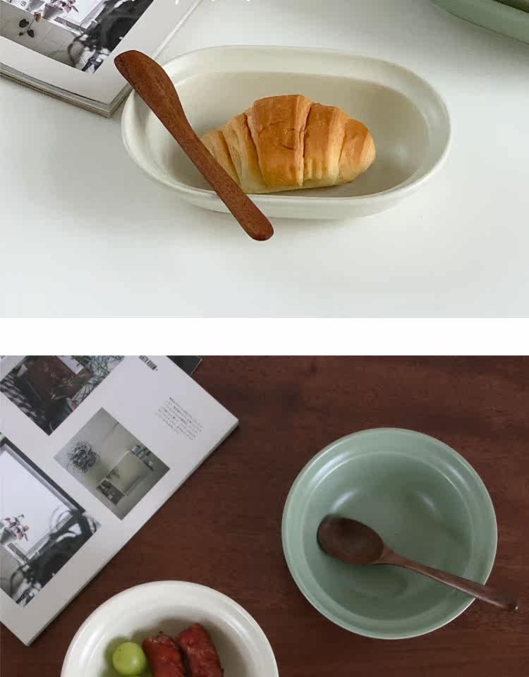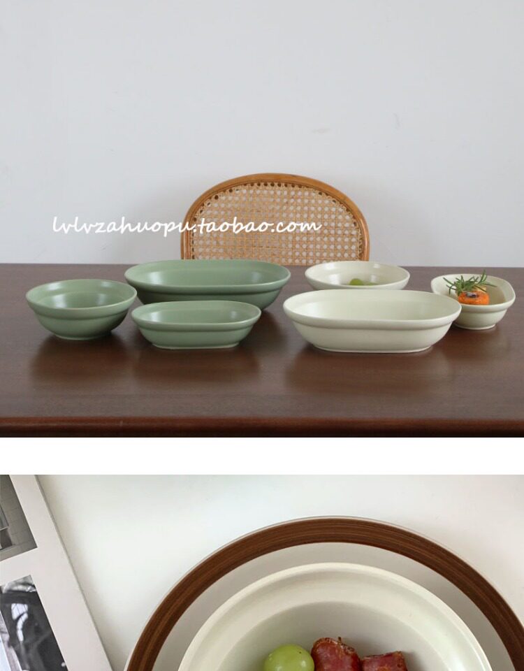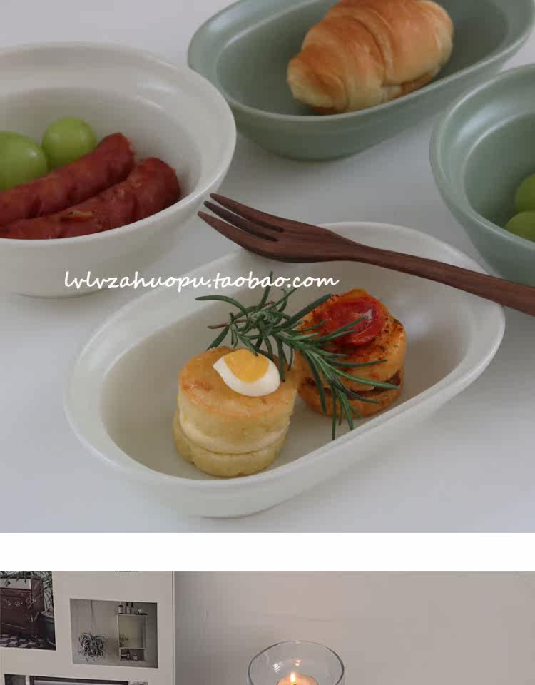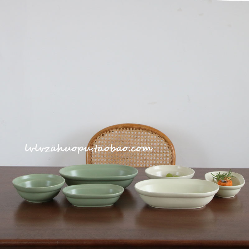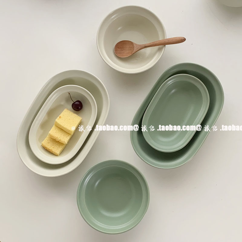 Корейский инвентарный матовая керамика западная тарелка овальная плита десерт десерт салат чаша Домохозяйство Японское йогуртное фрукты