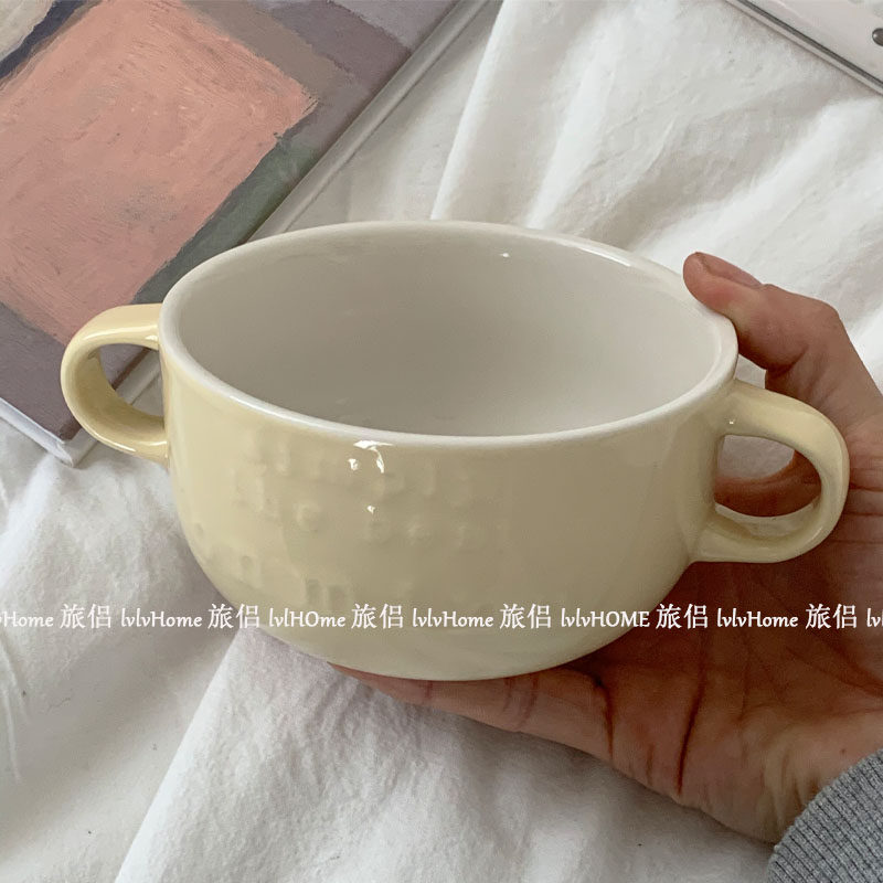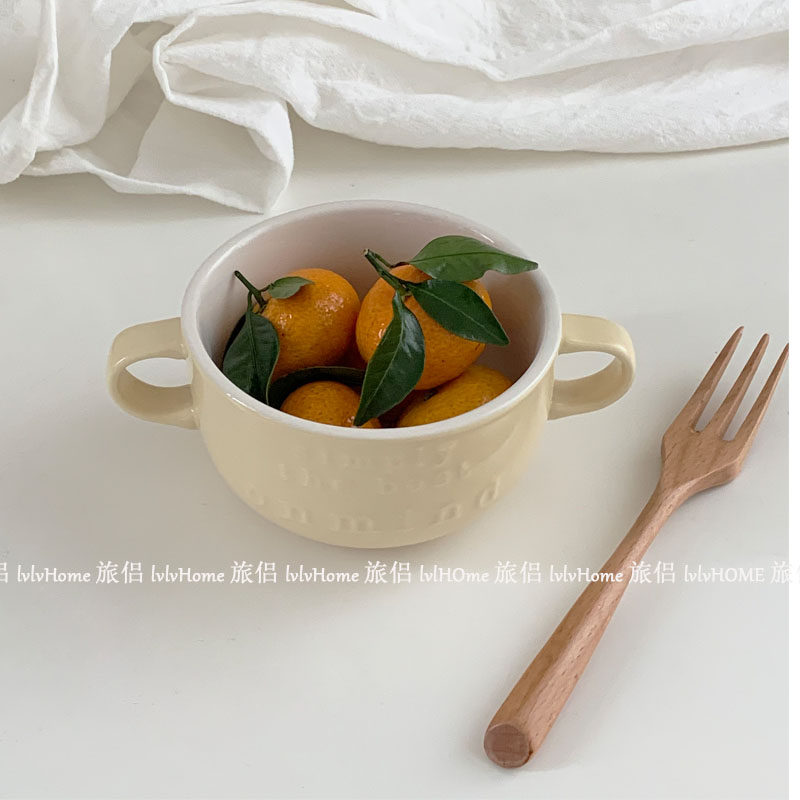 Корейские in ins взбитые сливки желтые двойные буквы чаша для завтрака на завтрак овсяной миску десертная миска йогуртная миска Домохозяйство Фрукты