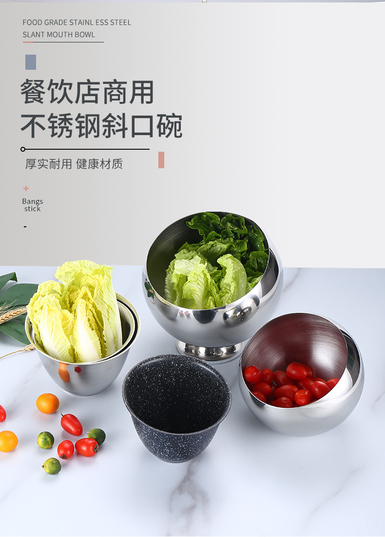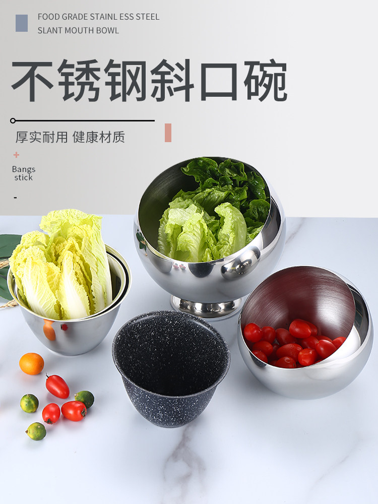 Миска для приправ из нержавеющей стали для ресторана, сферическая чаша с наклонным горлышком, миска для горячего горшка, миска для ресторана самообслуживания, ведро для овощей, специальная миска для соуса