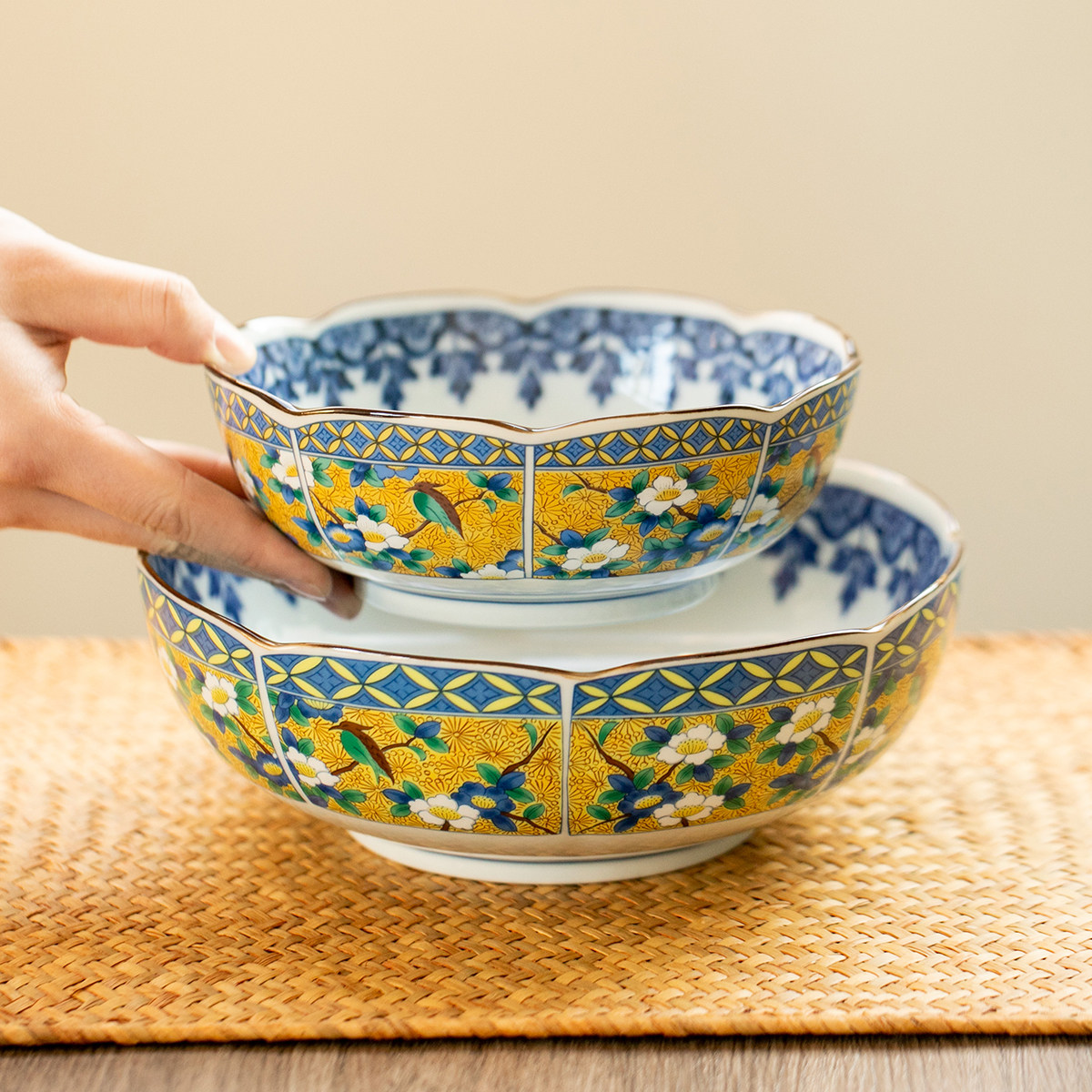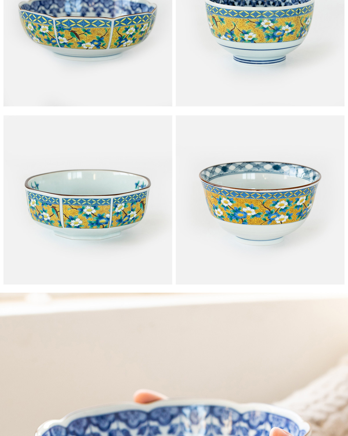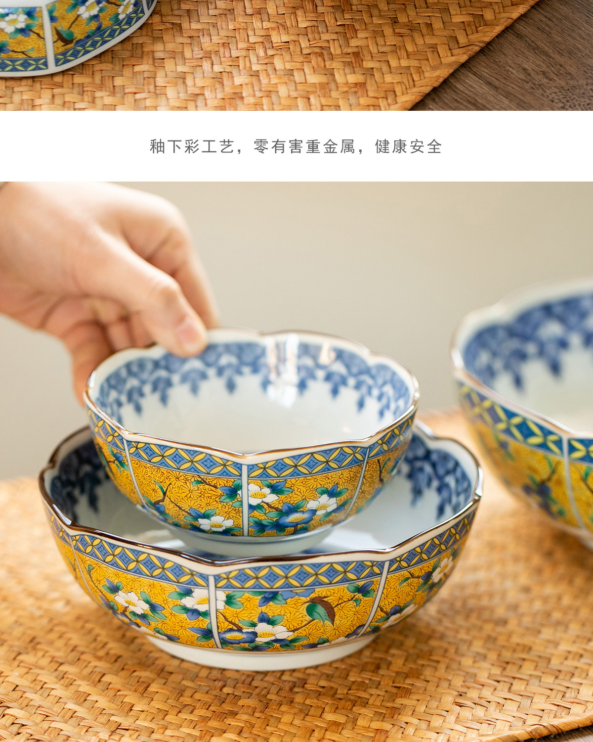 Япония импортированная древняя Иванли желтый цвет цветочные и птичьи рисовые миска с рисовой миской глубоко посуды Рамэн миска для супа миски Цвет Керамическая посуда