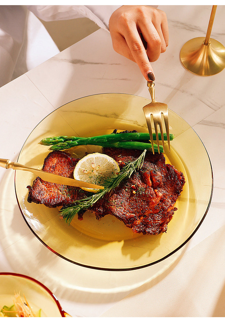 Янтарная стеклянная чаша, комплект для домашнего использования, креативная посуда для еды, легкий роскошный стиль, популярно в интернете