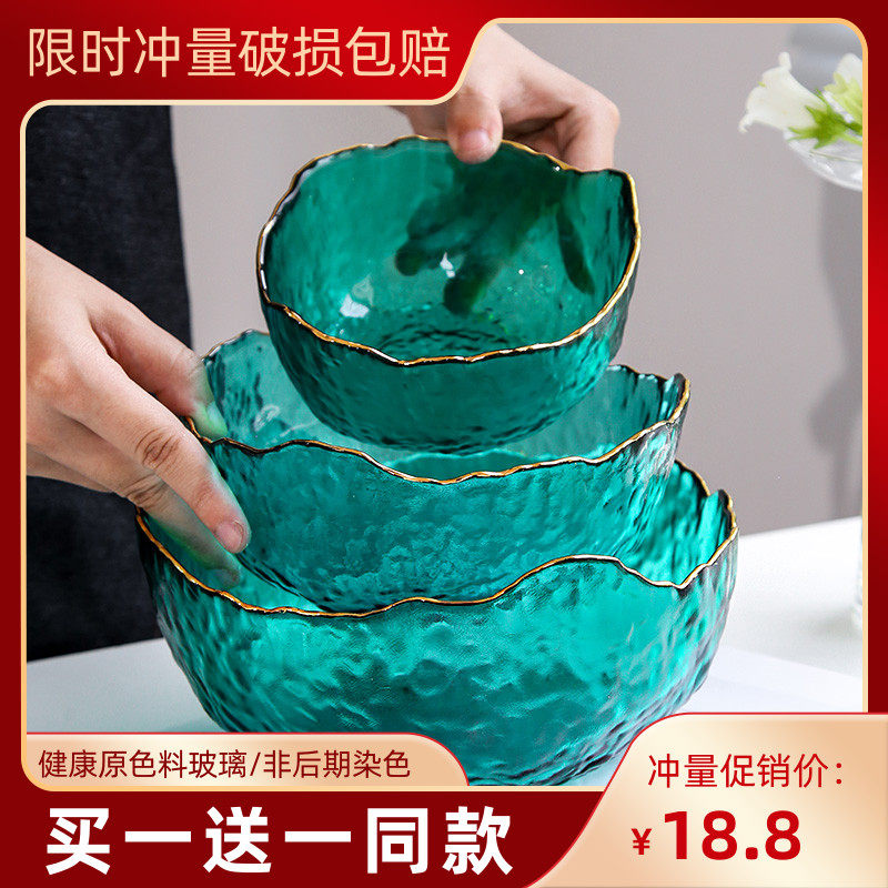 Пномпень зеленая прозрачная стеклянная миска в стиле ins, интернет-знаменитость, десерт, йогурт, салатница из овощей и фруктов, большая миска для смешанного риса 1