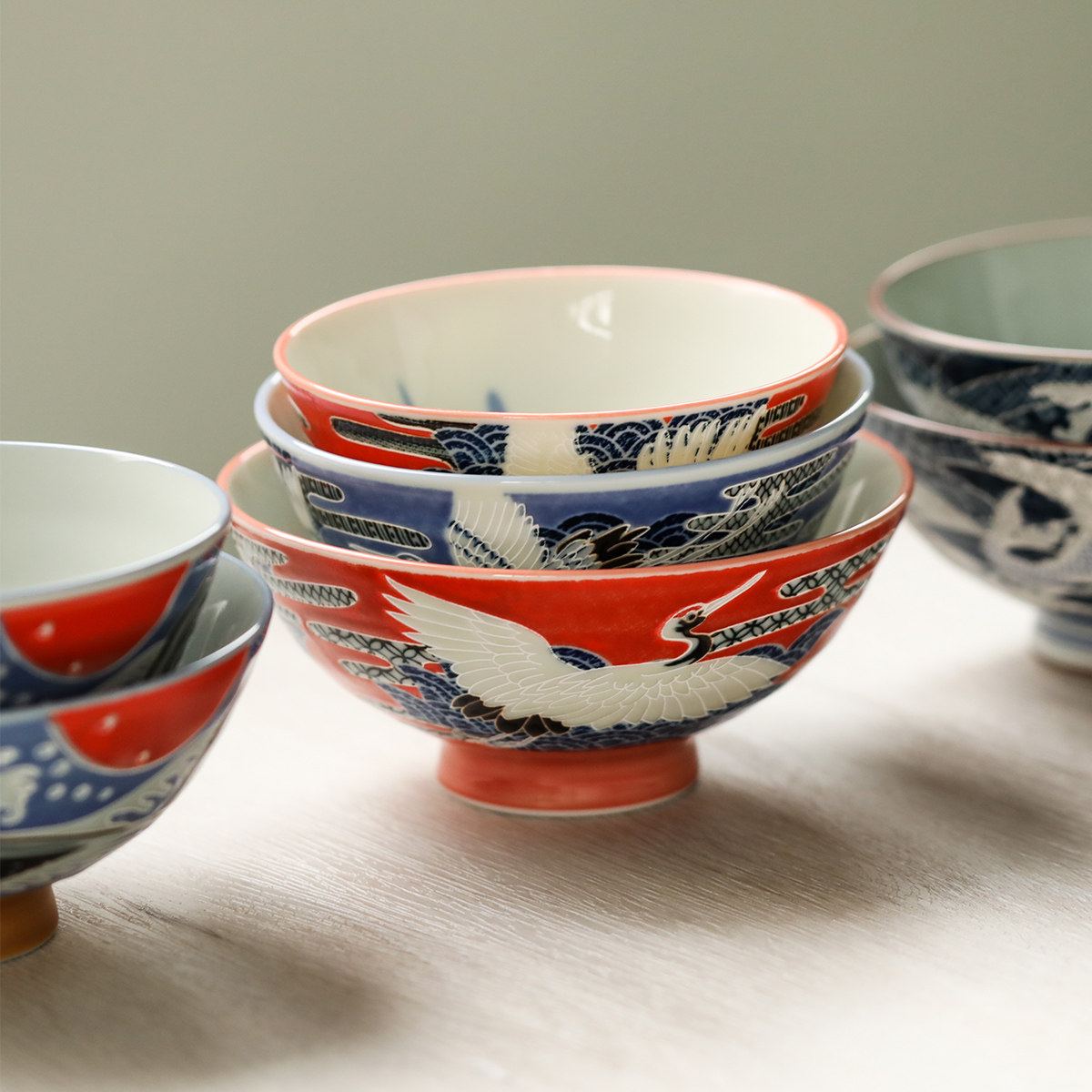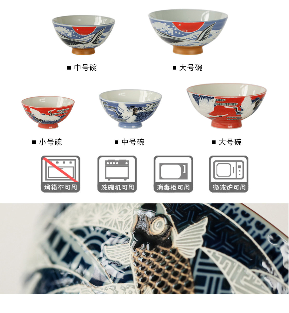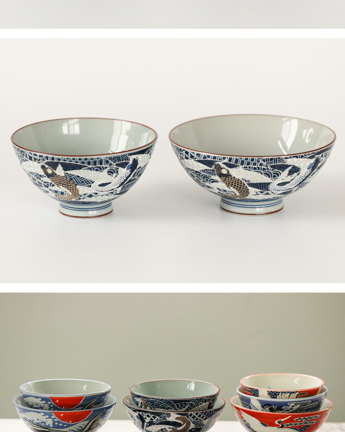 Япония импортированная Mido -обтянутая домашняя керамическая рисовая рисовая чаша koi carp fairy crane японский стиль.