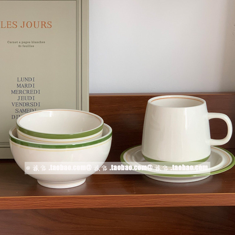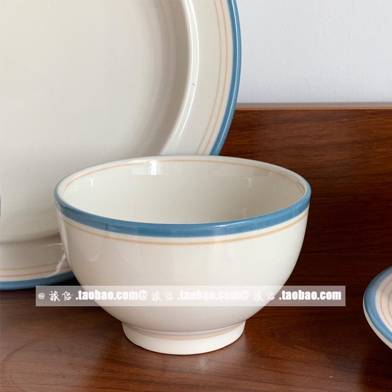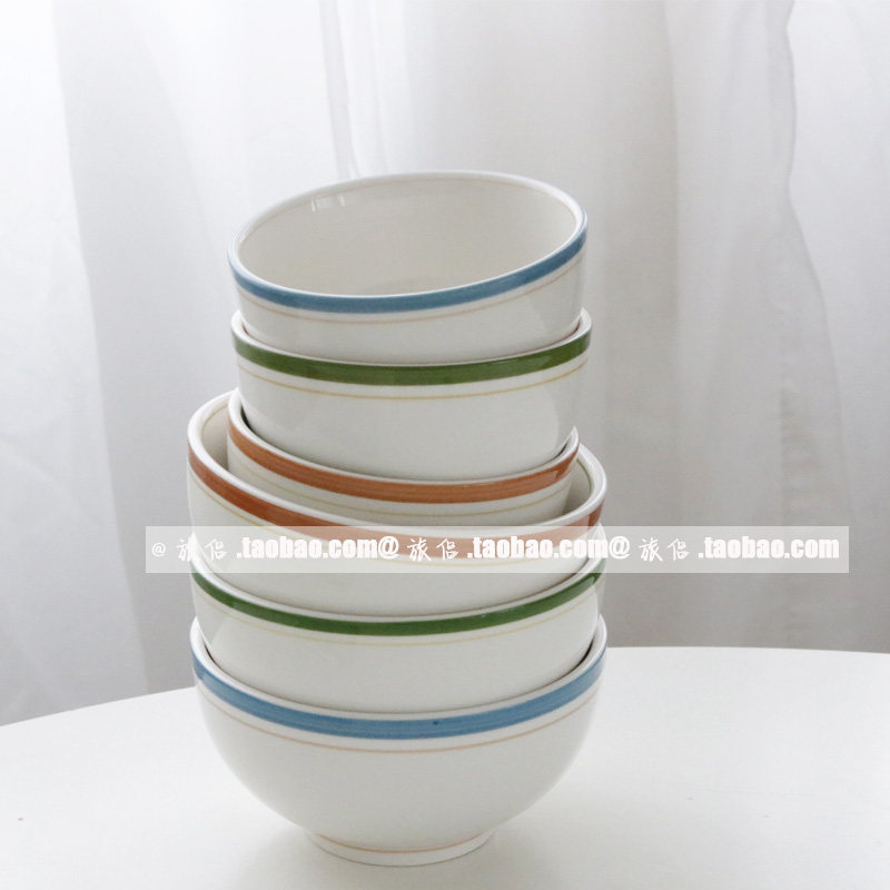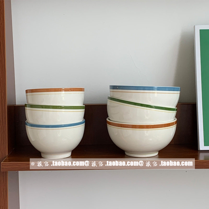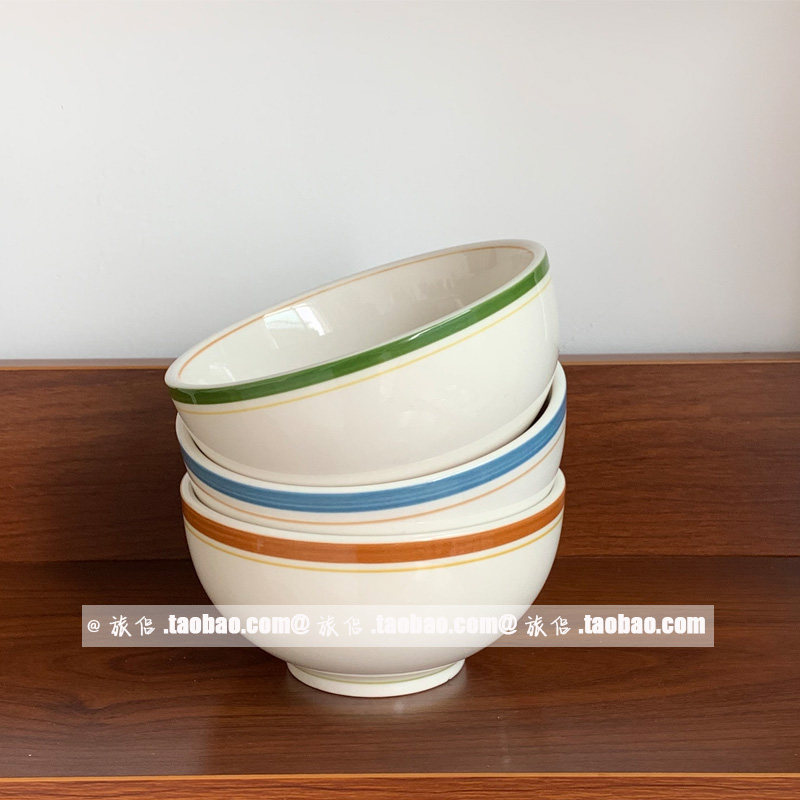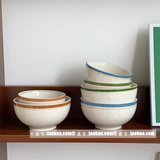 Южнокорейский блоггер INS Та же ретро -красочная линия керамическая миска рисовая миска йогуртная чаша для салата из салата для супа миска суп миска