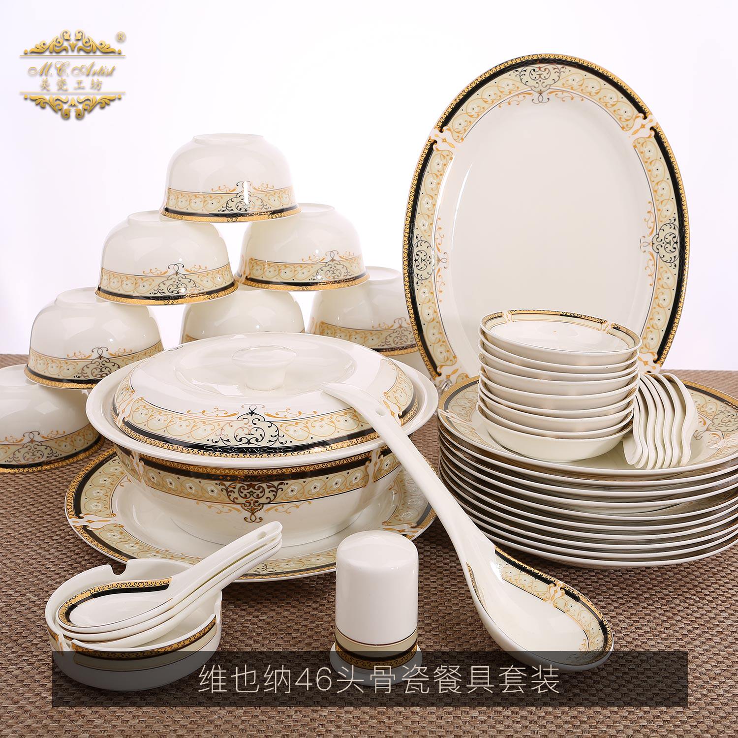 Посуда, комплект, супница, фарфоровая ложка для домашнего использования