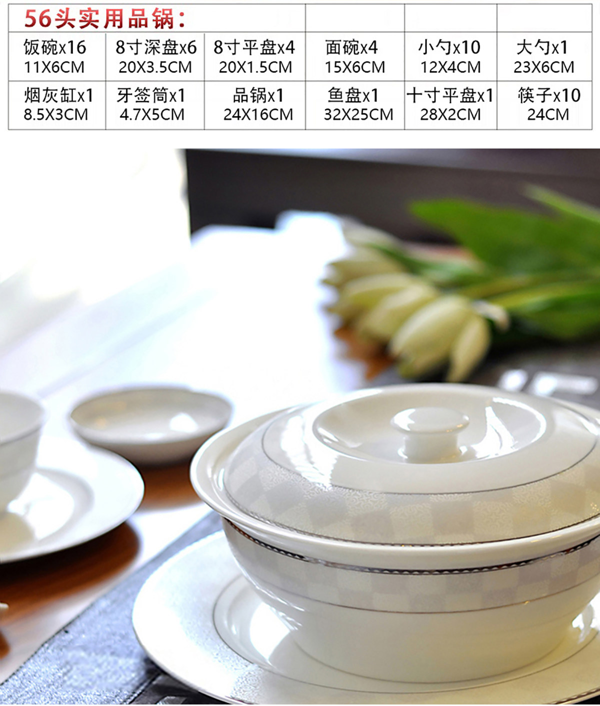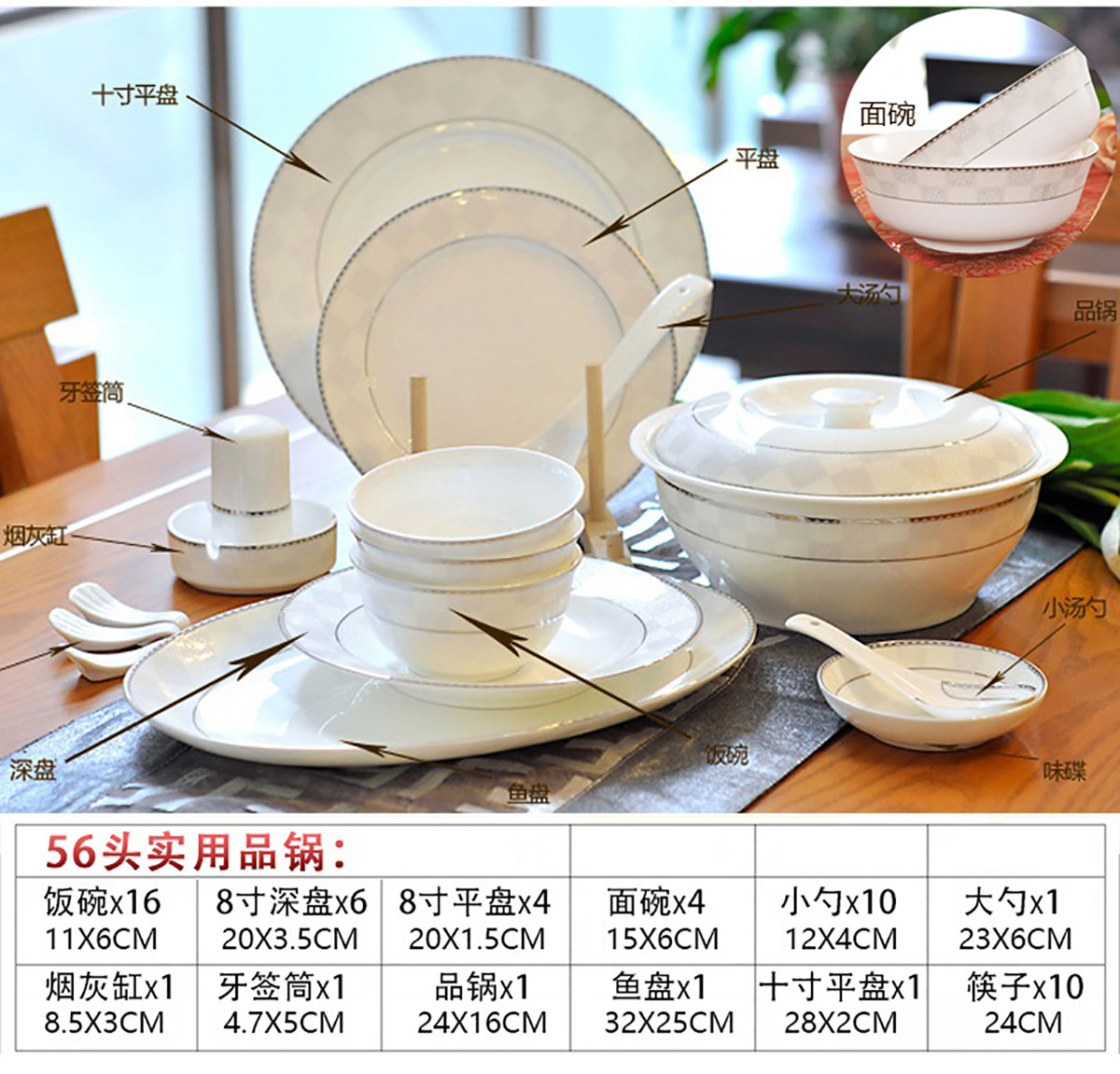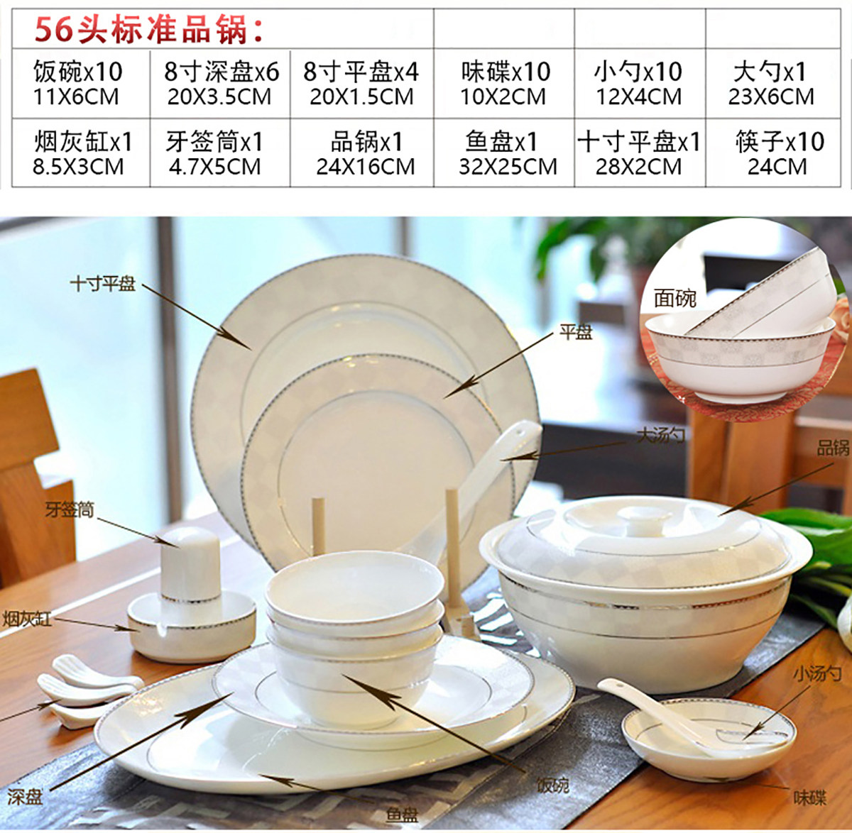 | Цвет: | Мингхуобао, Дворцовый сокровище, Плита, Девятидюймовая суп -миска, 4.5 -инд -золотой колокол чаши, 6 -INCH LOWLE BOWN, 8 -INCH DEEP DISK, 8 -INCH Плоский диск, 10 -INCH Плоский диск, Большая рыбная тарелка, Лебедь, Цветочная корзина, Пепельница, Зубочистка держатель, Блюдо, 6 -INCH BOST DISC, Немного ложки, Большая ложка, Десять дублей куриных крылышек и деревянных палочек для еды, Металлические палочки для еды, Двойной палочки для палочек белый фарфор, Заварочный чайник, Чайная чашка |