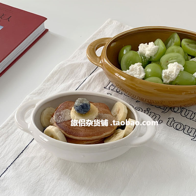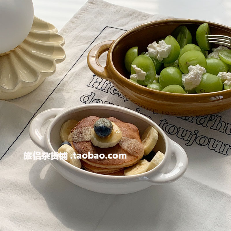 Японская стиля ins круглая керамическая чаша двойная овальная миска домашняя овощная диск йогурт зерновой чаша карри чаша для завтрака