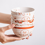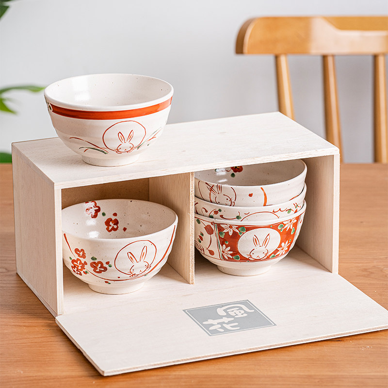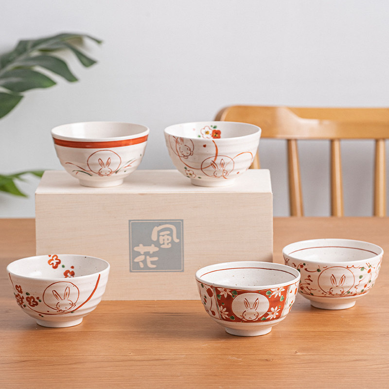 Xiaolutayaki, импортированный из Японии, набор из пяти предметов, чаша для риса с цветком ветра, снежным кроликом, маленькая миска для риса, подарочная коробка на новоселье