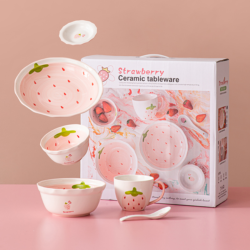 - Клубника, подарочная коробка, супница, комплект, 6 шт