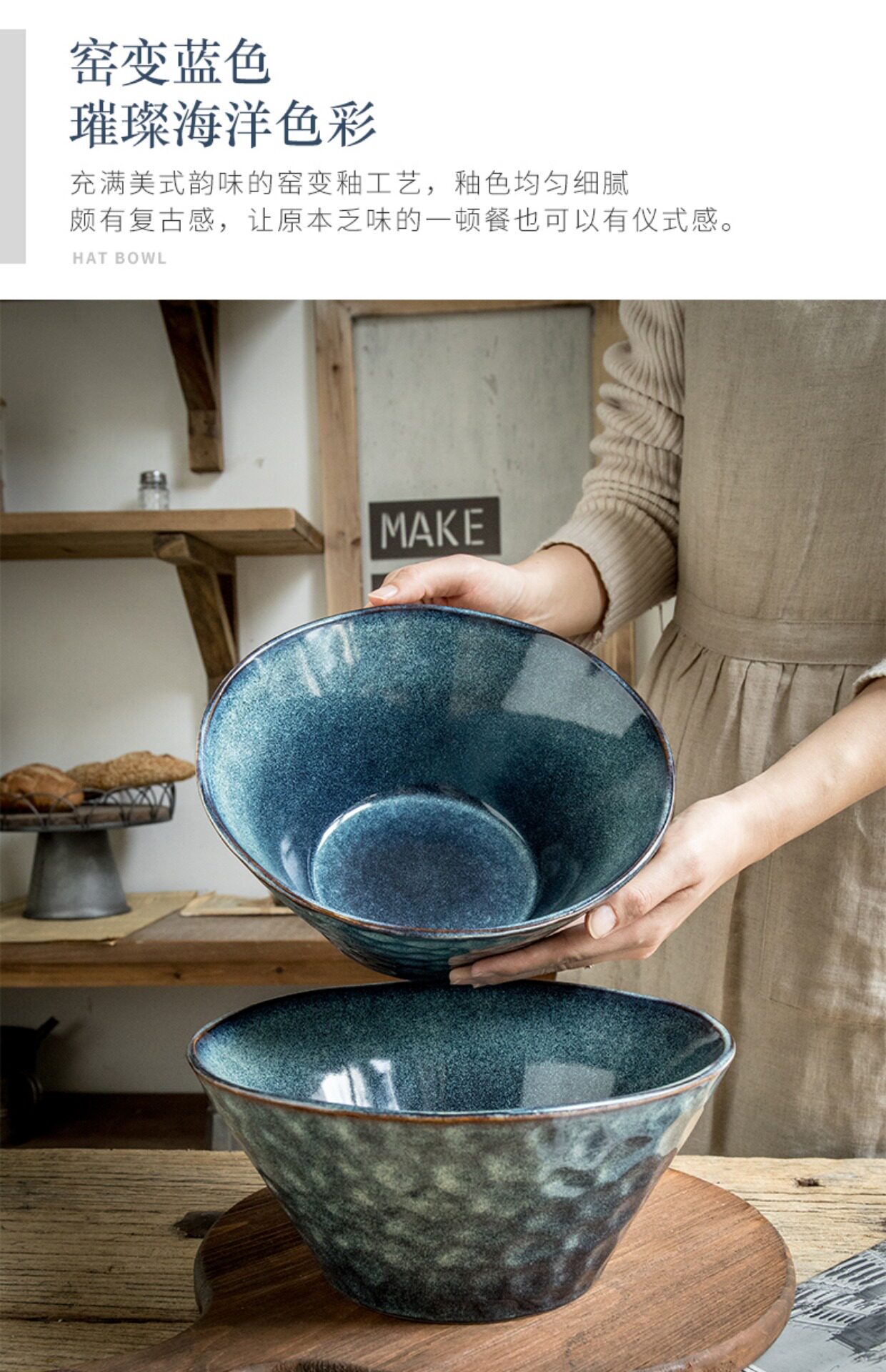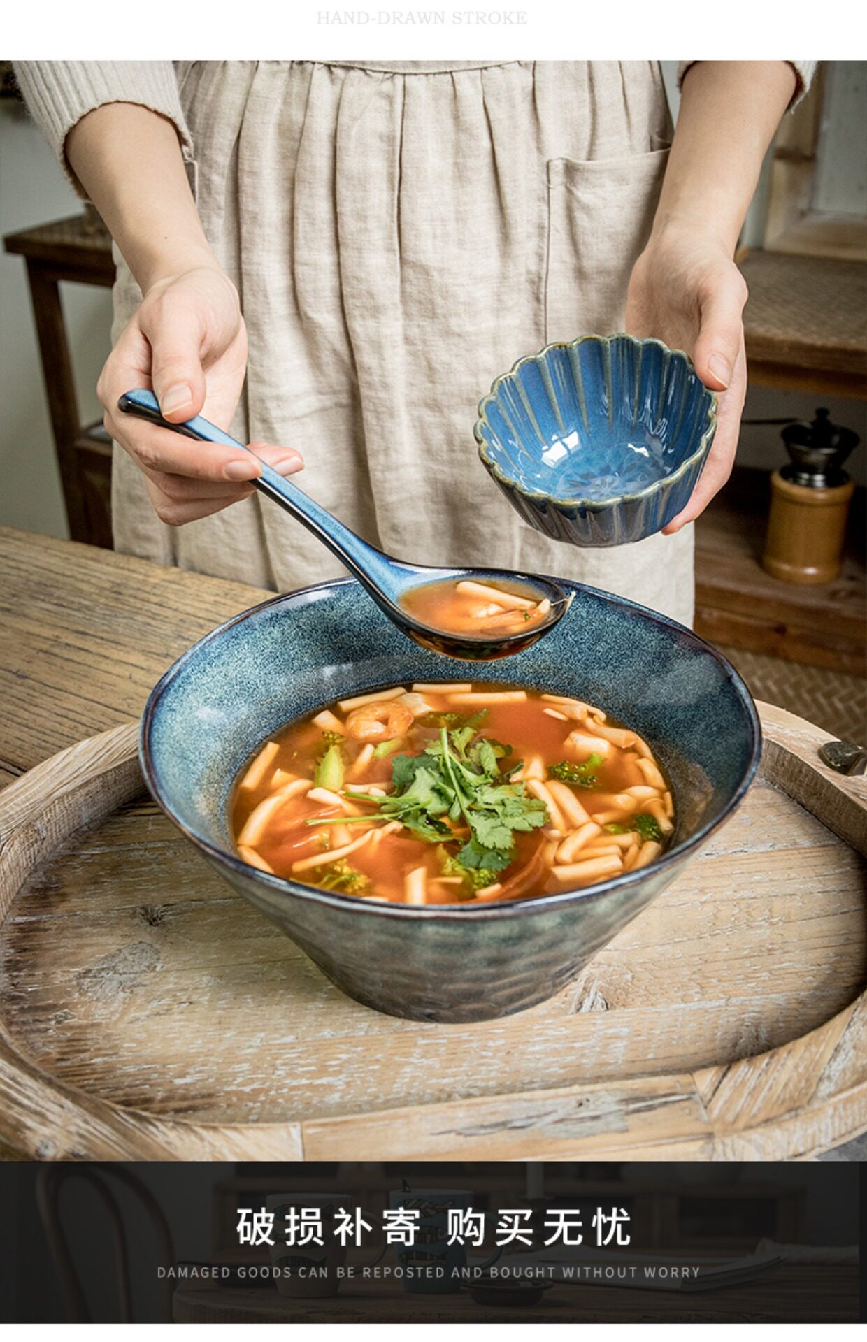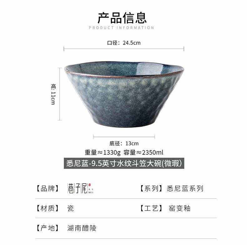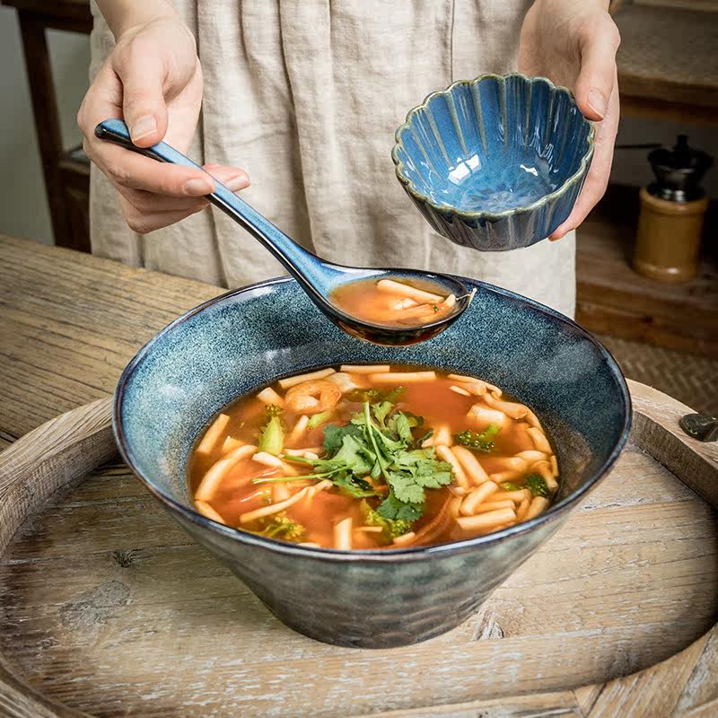 Конец переулка [тихая синяя вода с волнкой большой миска увеличивает миску супа] 9,5 -дюймовый керамический ковш