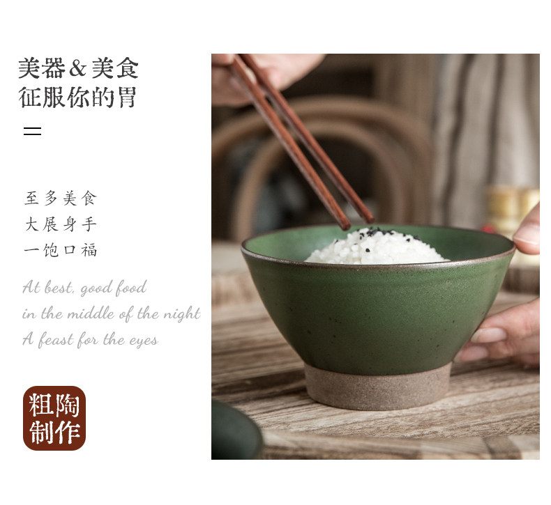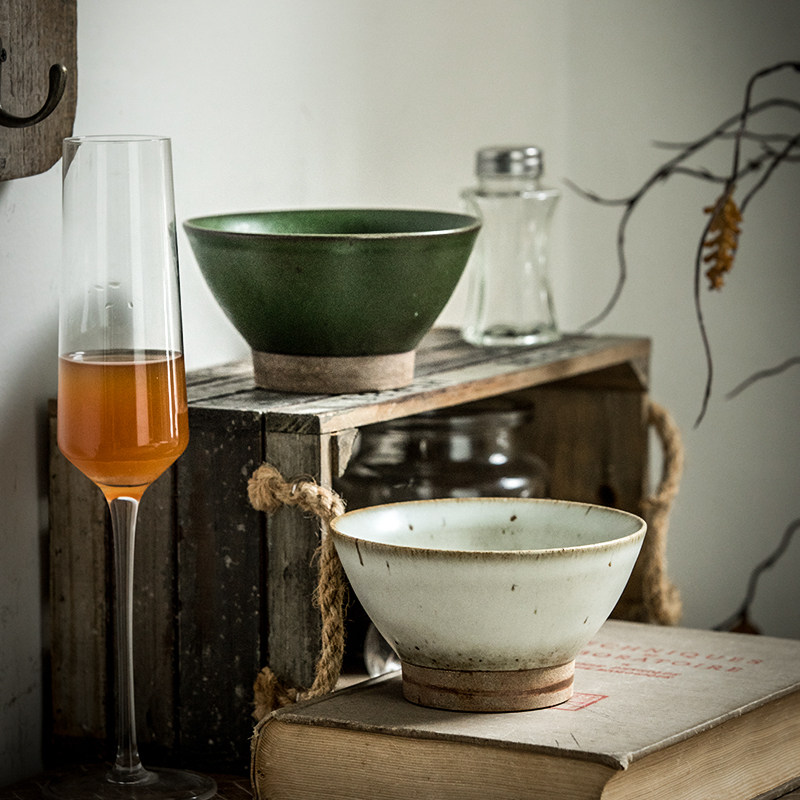 Аллеовый хвост [Ретро ретро -ду -панпин] Грубая глиняная посуда с высокой высокой характеристикой чаши керамическая чаша Винтажная рисовая чаша