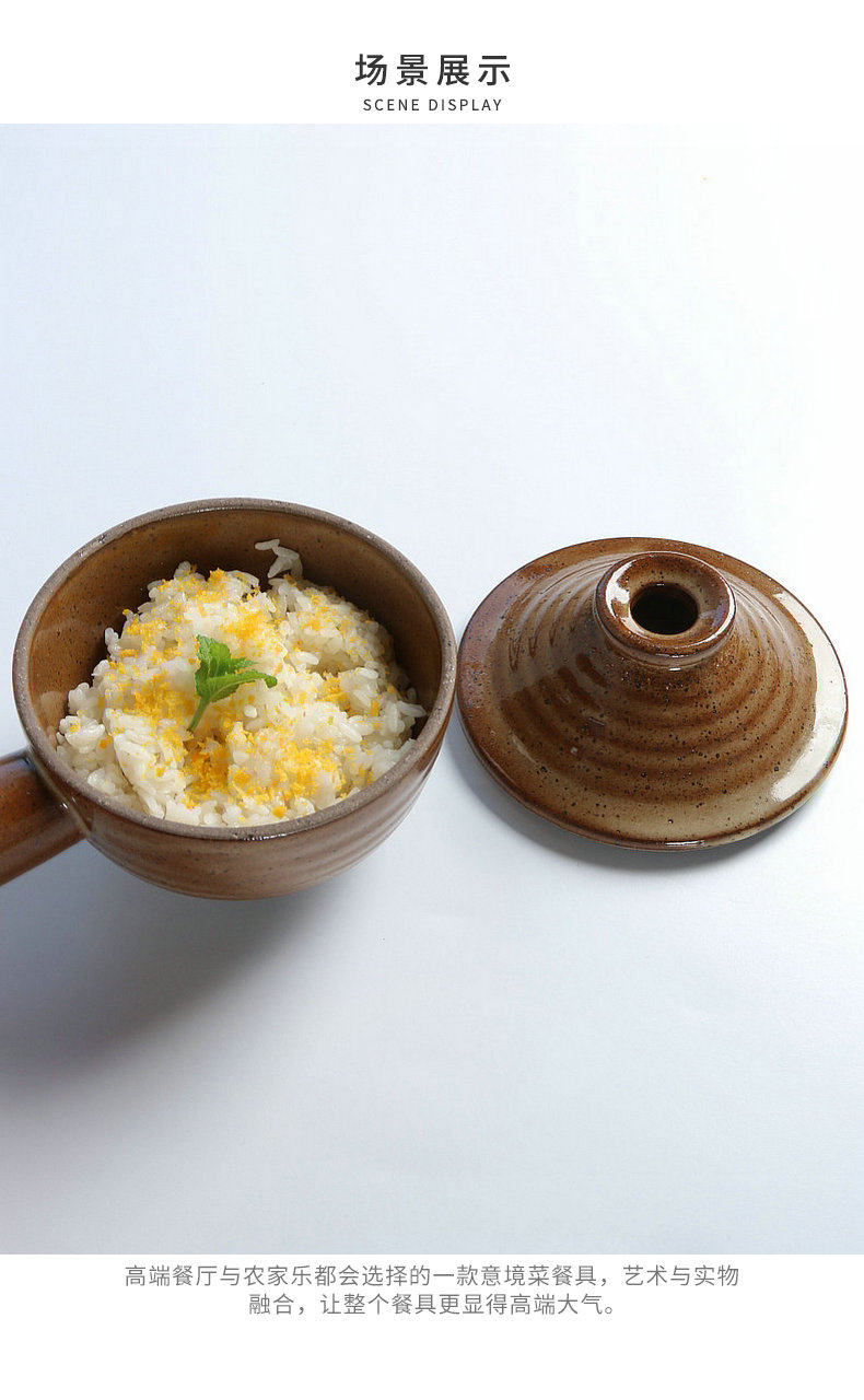 Энган грубая гончарная миска боковая ручка японская ретро -ремень крышки суп миска фруктовые салат салат чаша специальное диск отель отель посуда