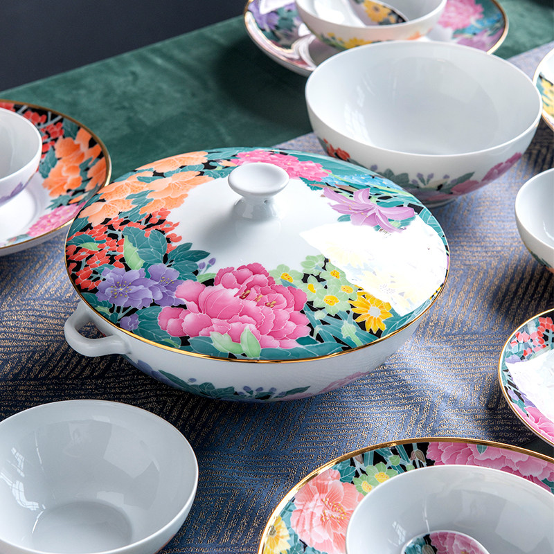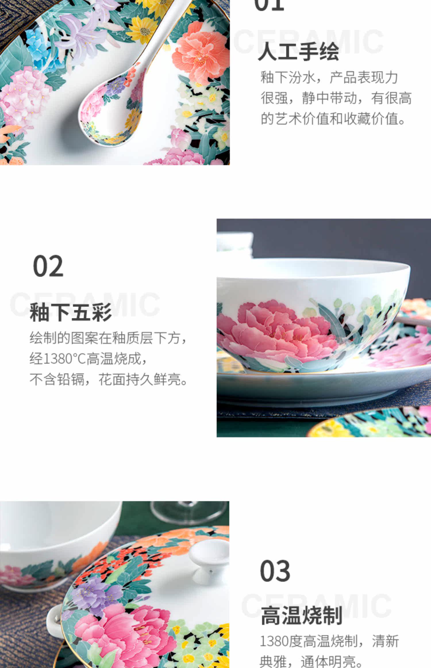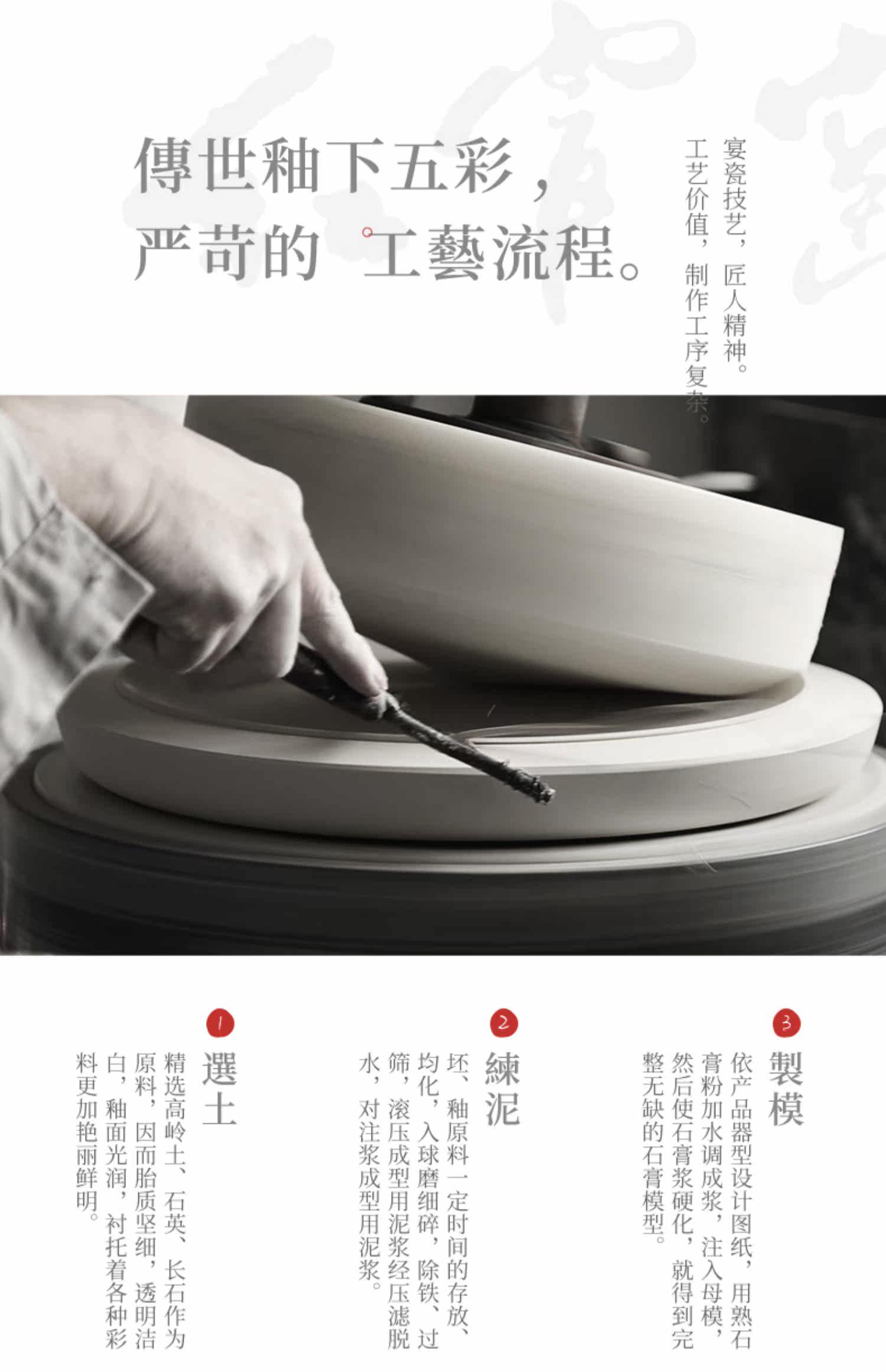 红官窑 Высококлассная посуда, фарфоровый комплект, легкий роскошный стиль, подарок на день рождения, китайский стиль, ручная роспись
