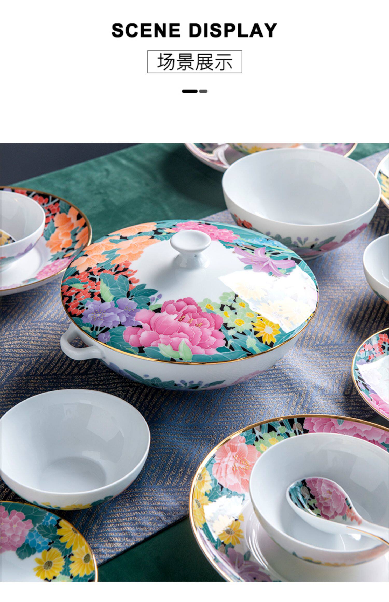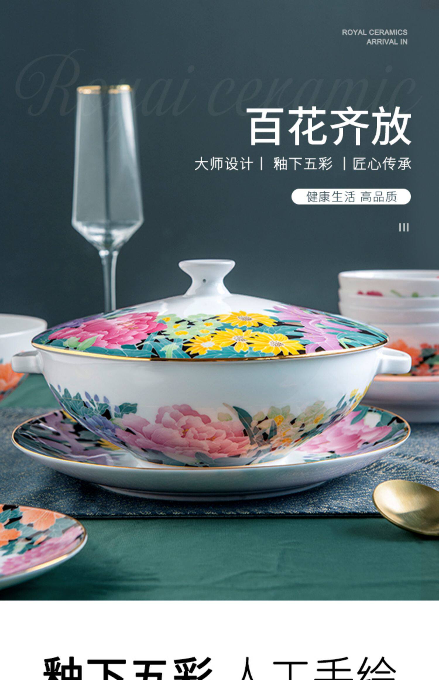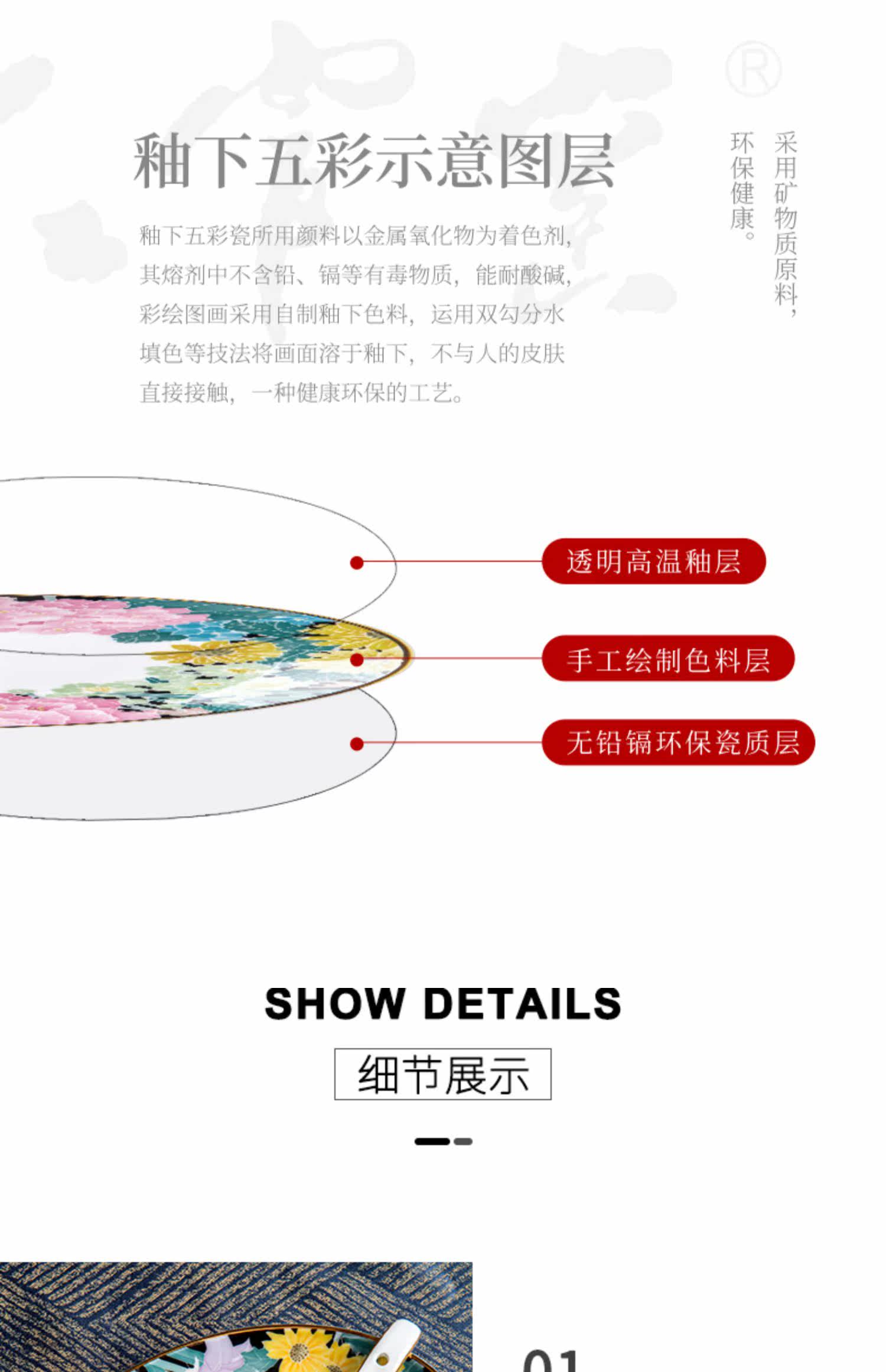 红官窑 Высококлассная посуда, фарфоровый комплект, легкий роскошный стиль, подарок на день рождения, китайский стиль, ручная роспись