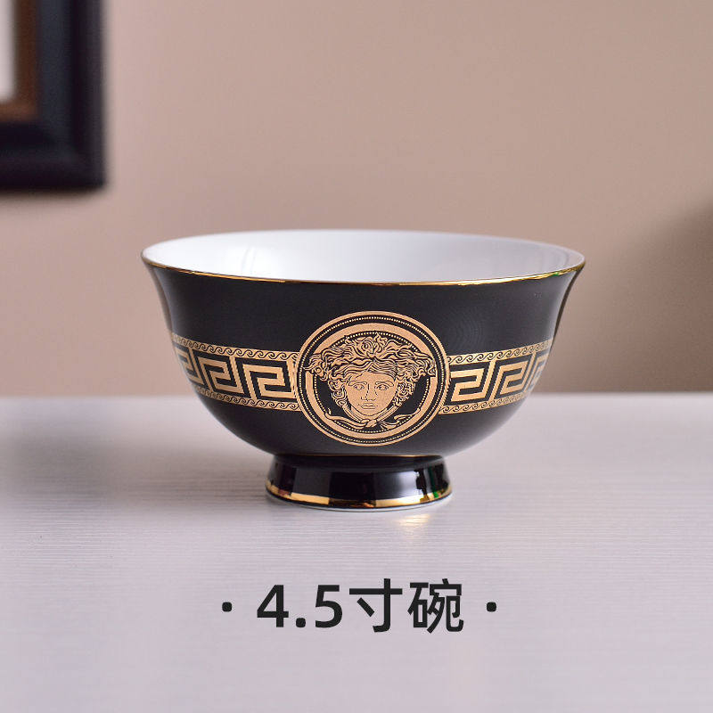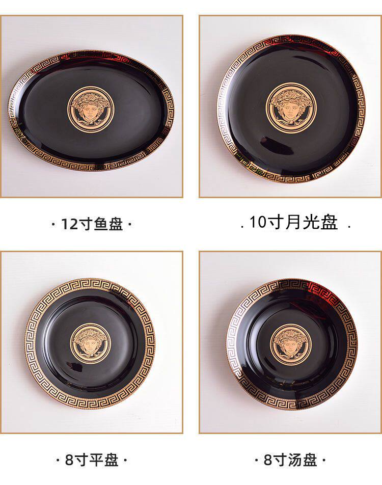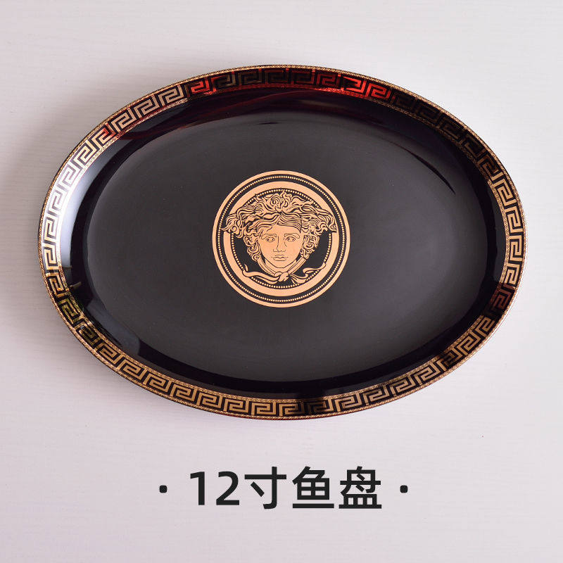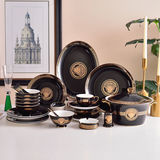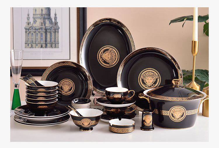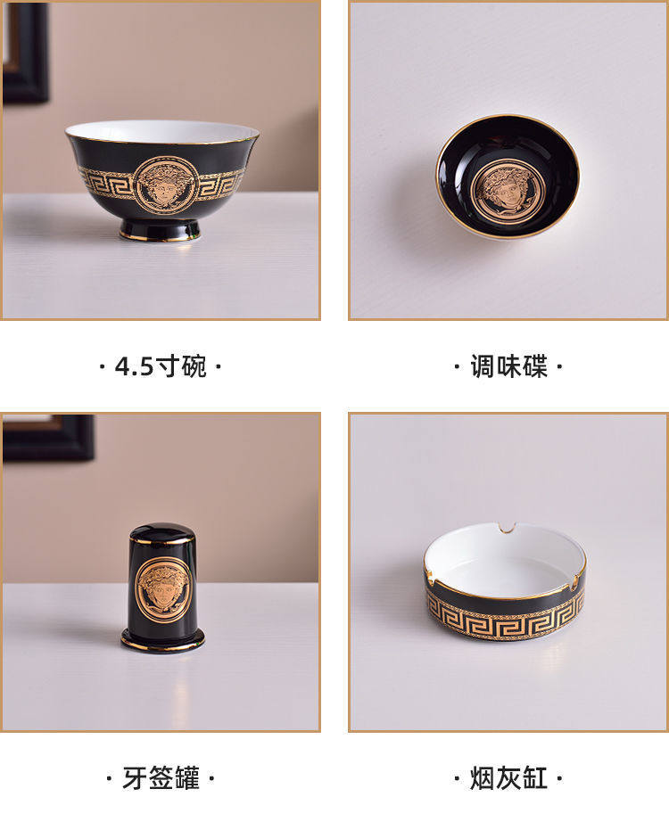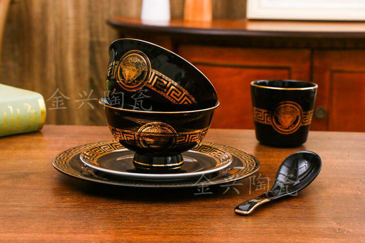 Черная глазурь, золотая головка, миска для риса, костяной фарфор, посуда для дома, отеля, отеля, керамическая плоская тарелка, рыбная тарелка, тарелка для стейка, маленькая ложка, палочки для еды, суповая миска