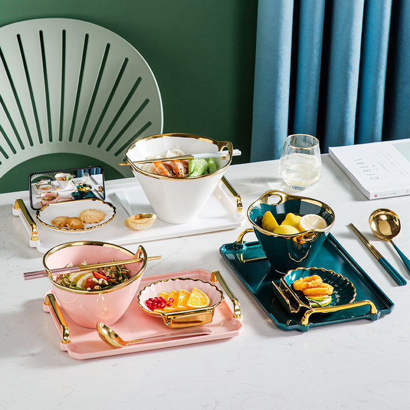 Креативная японская керамическая вместительная и большая посуда для домашнего использования, комплект, популярно в интернете, легкий роскошный стиль