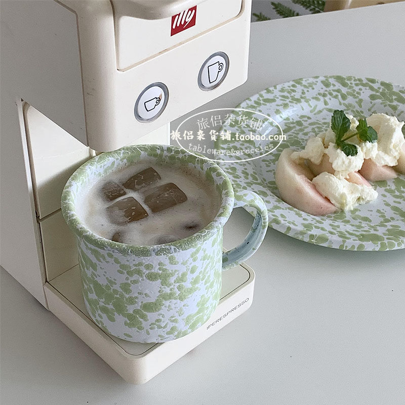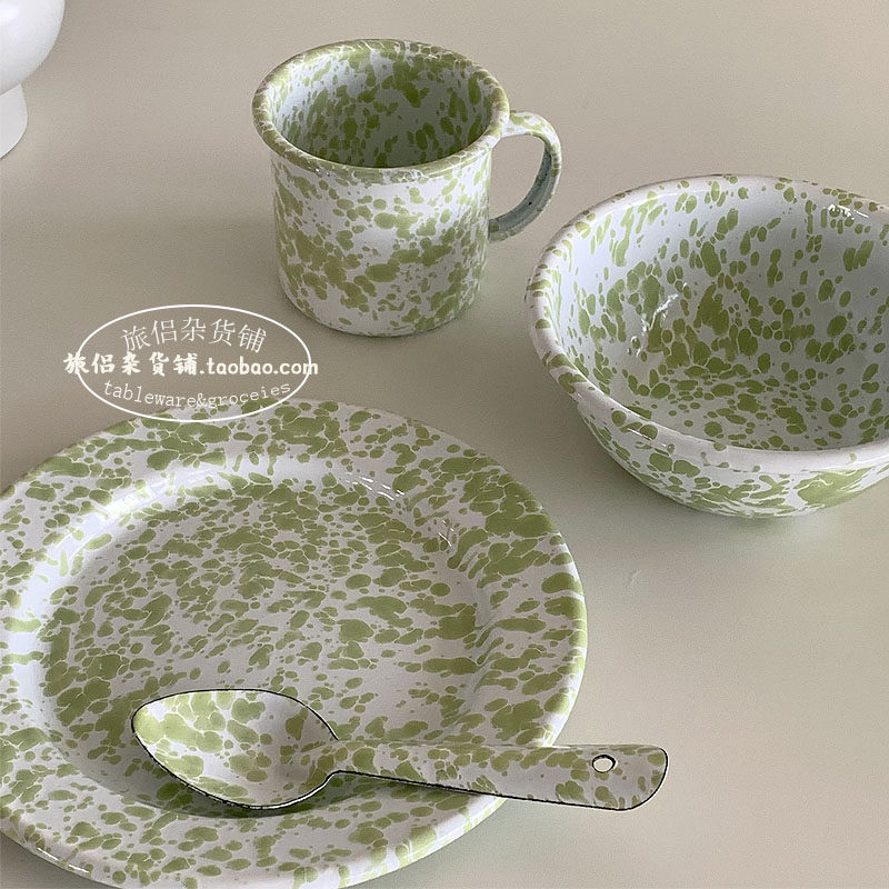Корейский блоггер INS, та же самая монетная зеленая эмалевая посуда, посуда для овсянкой, кофейная чашка, кофейная чашка для завтрака