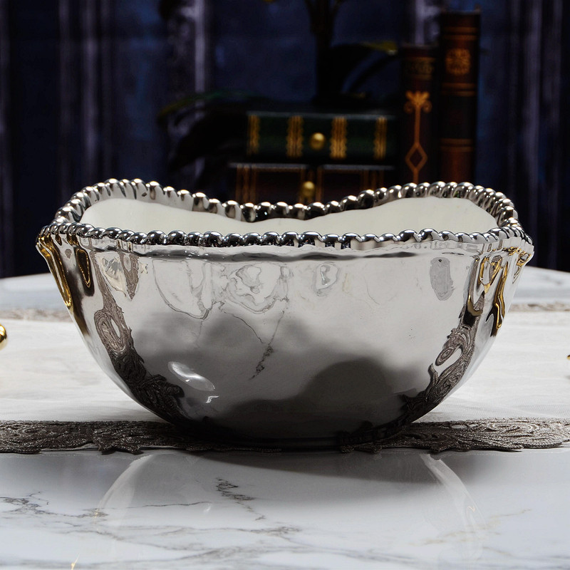 Европейское стиль кормовой мастерство керамическое покрытие световая роскошная миска европейская мебель для дома большая фруктовая миска. Дефект пищевая чаша. Дефект.