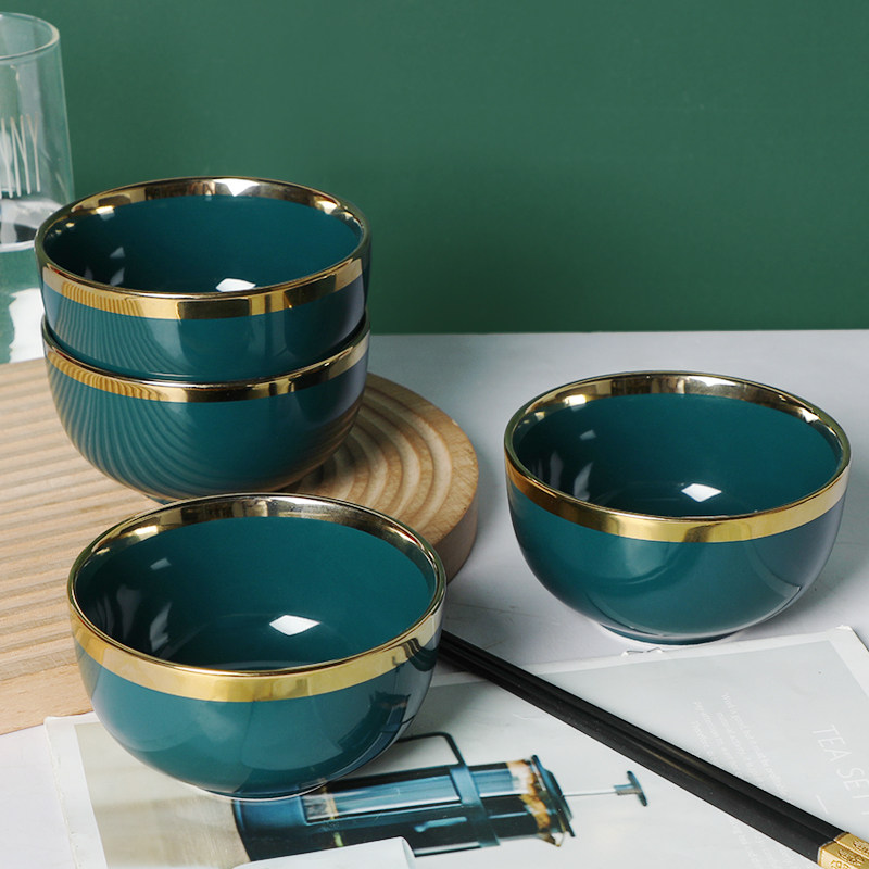 Интернет-знаменитость керамическая чаша с золотыми краями для дома Использование 2022 Новая высококачественная рисовая чаша для Rice Bowl Creative для взрослых круглой чаши для