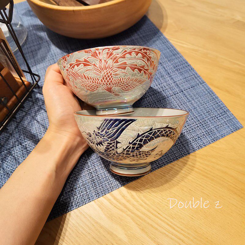 Японская импортная керамическая ретро чайная чашка для еды, глянцевая супница для домашнего использования, дракон и феникс, принт
