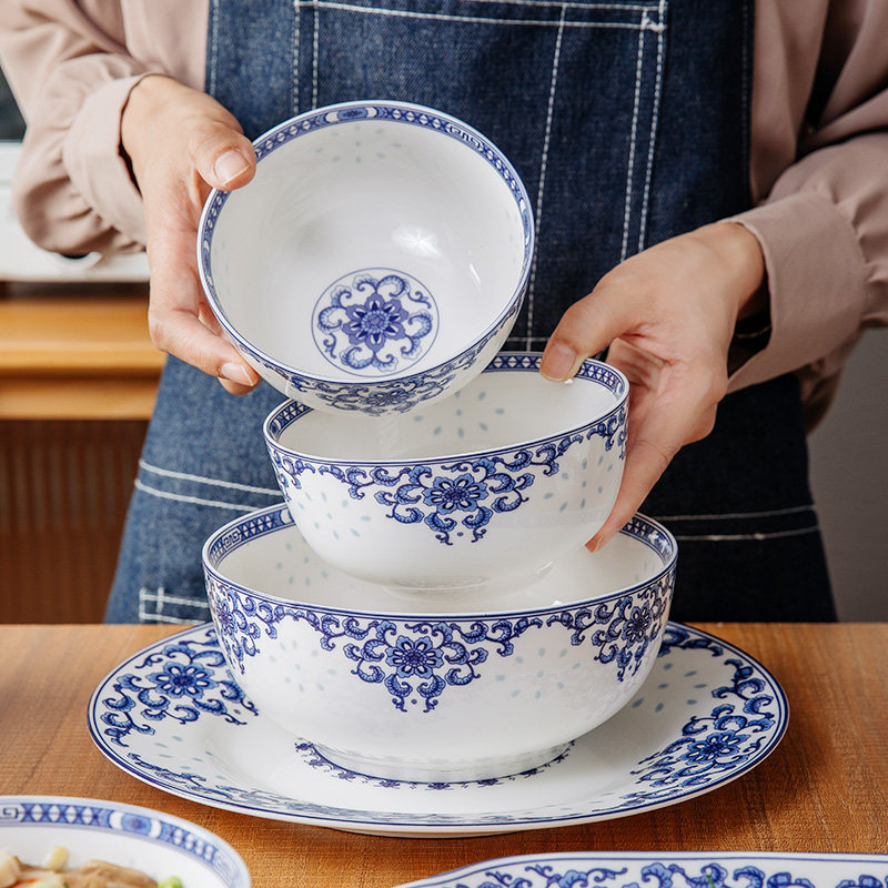 Сине-белый комплект, керамическая посуда, китайский стиль