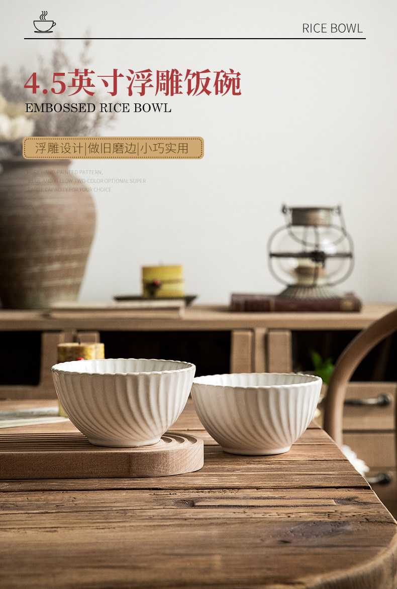 Конец переулка 〖13,99 Две супер красивые рисовые миски с рельефом〗 мимоза 4,5 -дюймовая керамическая рисовая чаша костюм