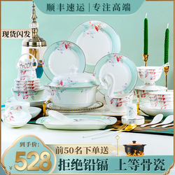 2024 Новые блюда устанавливают обшивку высокопроизводительного джингхенского фарфорового фарфорового фарфорового посуды для перемещения керамических блюд и комбинации палочек для еды