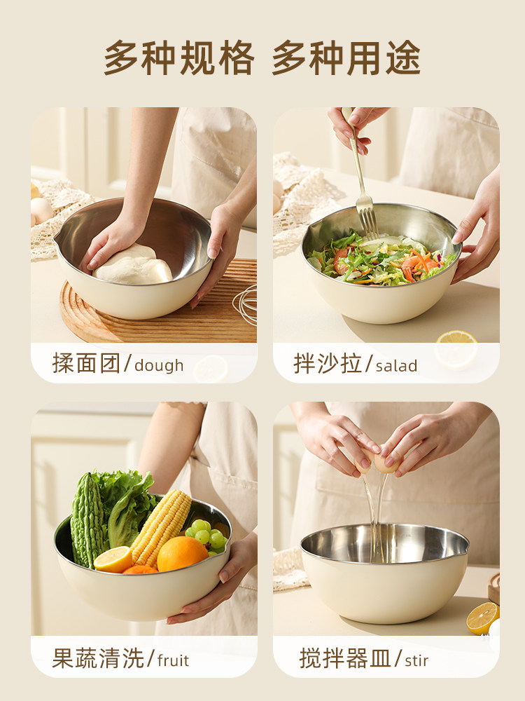 Corolt из нержавеющей стали салат из салата из горшки для горшки для жира -с ослабляющим общежил фруктовые продукты питания яйца 1 человек ешьте 8 -дюймовую большую миску