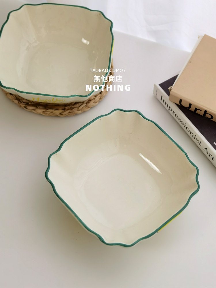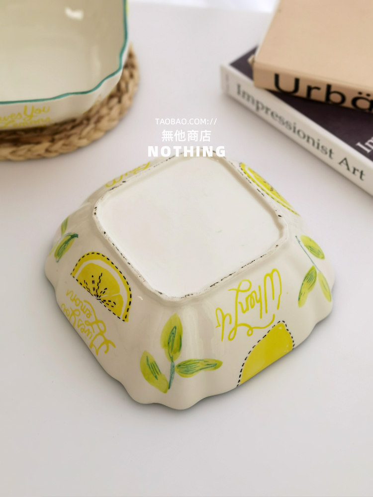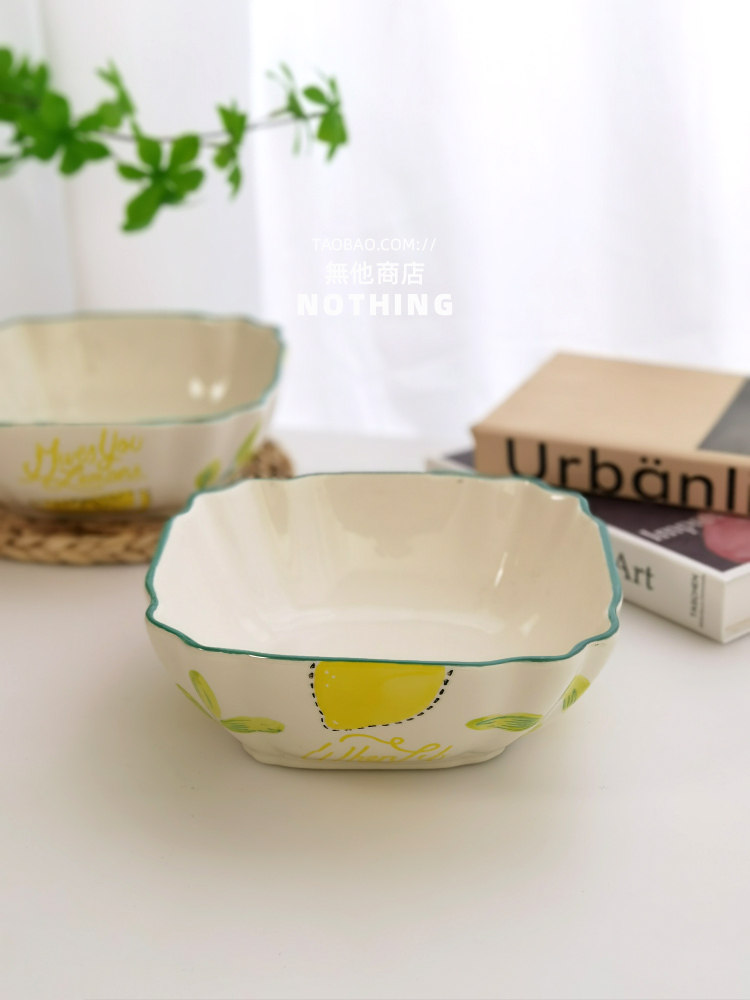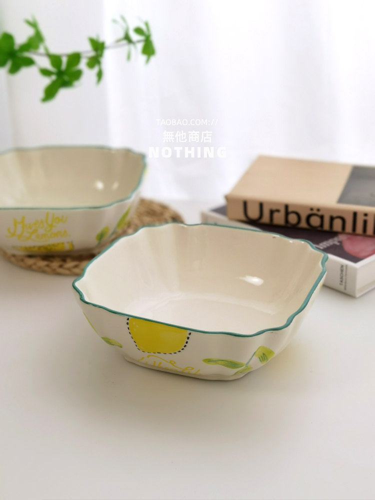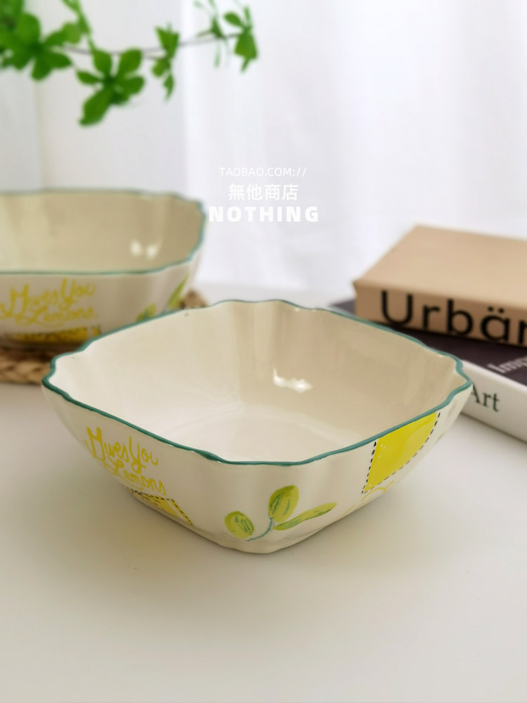 Нет другого магазина иностранной торговли хвост для одиночной лимонной квадратной миски для салата из салата из инопланетянина суп миски Керамическая посуда под застекленным блюдом
