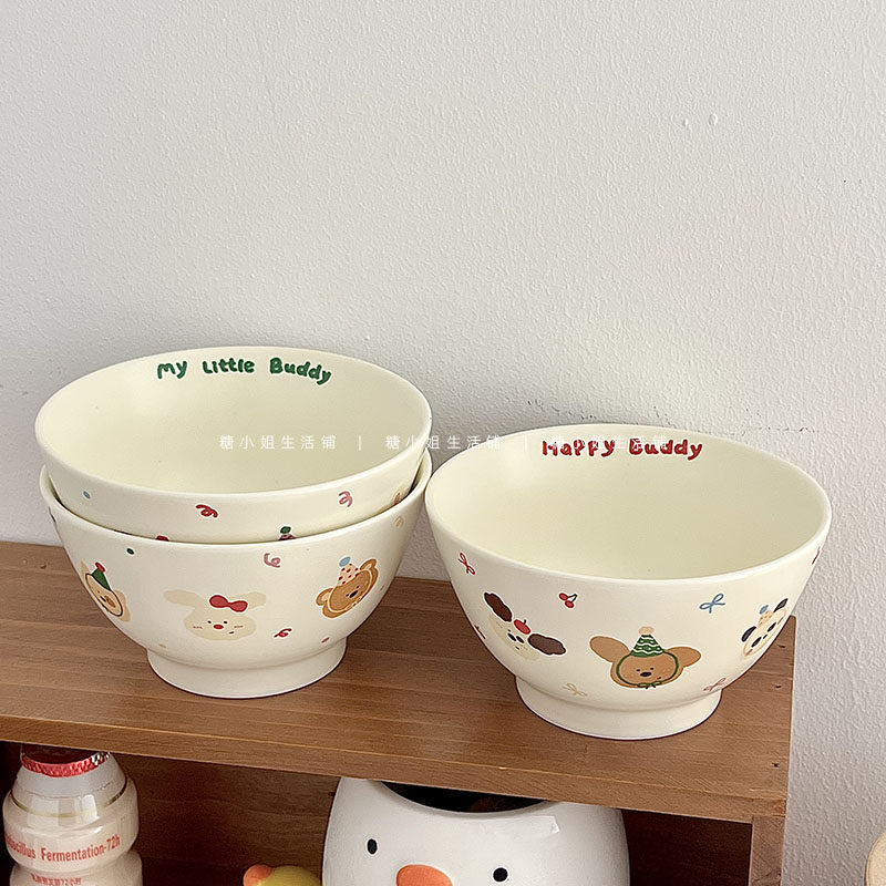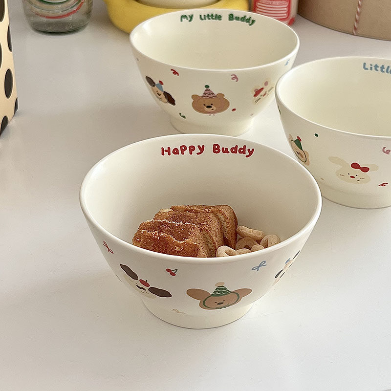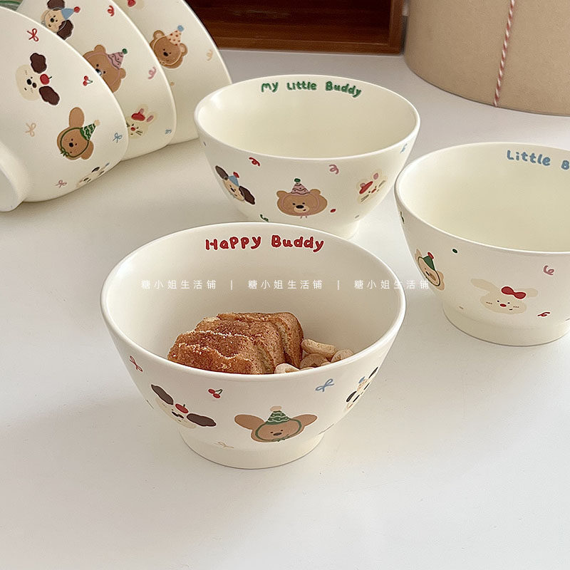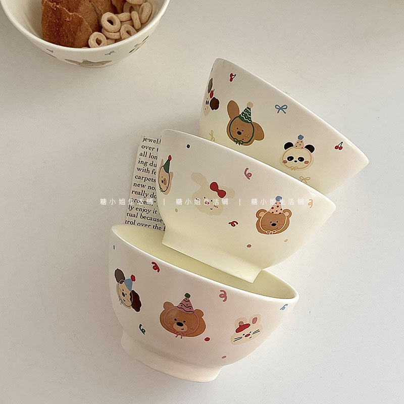 Мисс сахар милый мультипликационная керамическая чаша корейская матовая рисовая чаша высокая стоимость лица овсяная десертная чаша йогурта миска