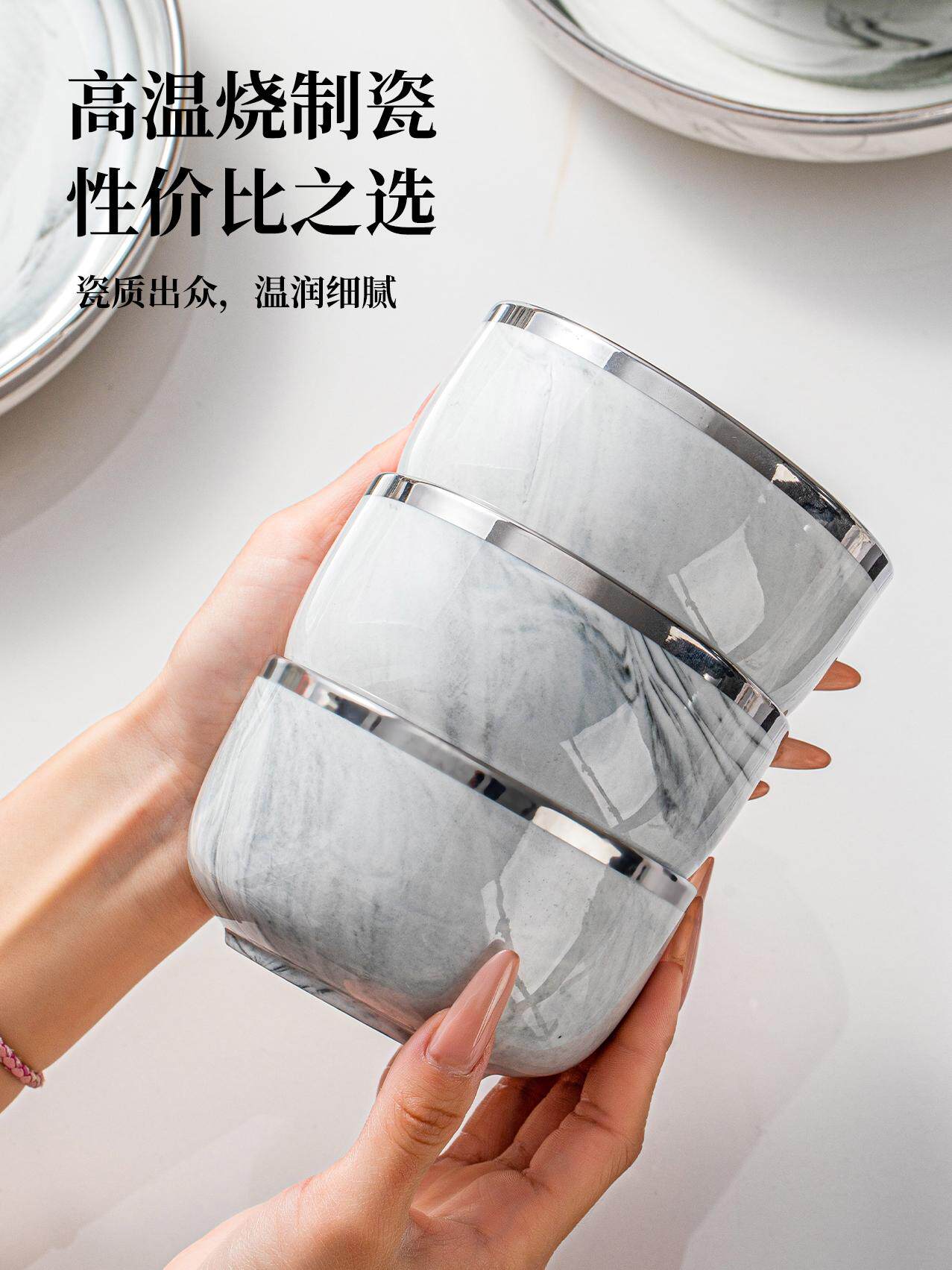 Керамическая мраморная супница для еды для домашнего использования, комплект, легкий роскошный стиль